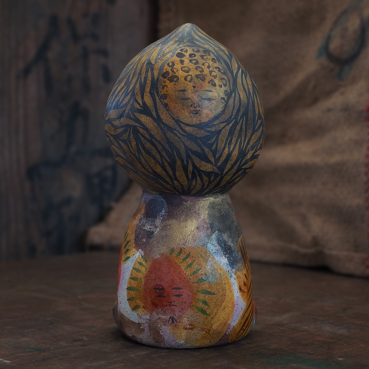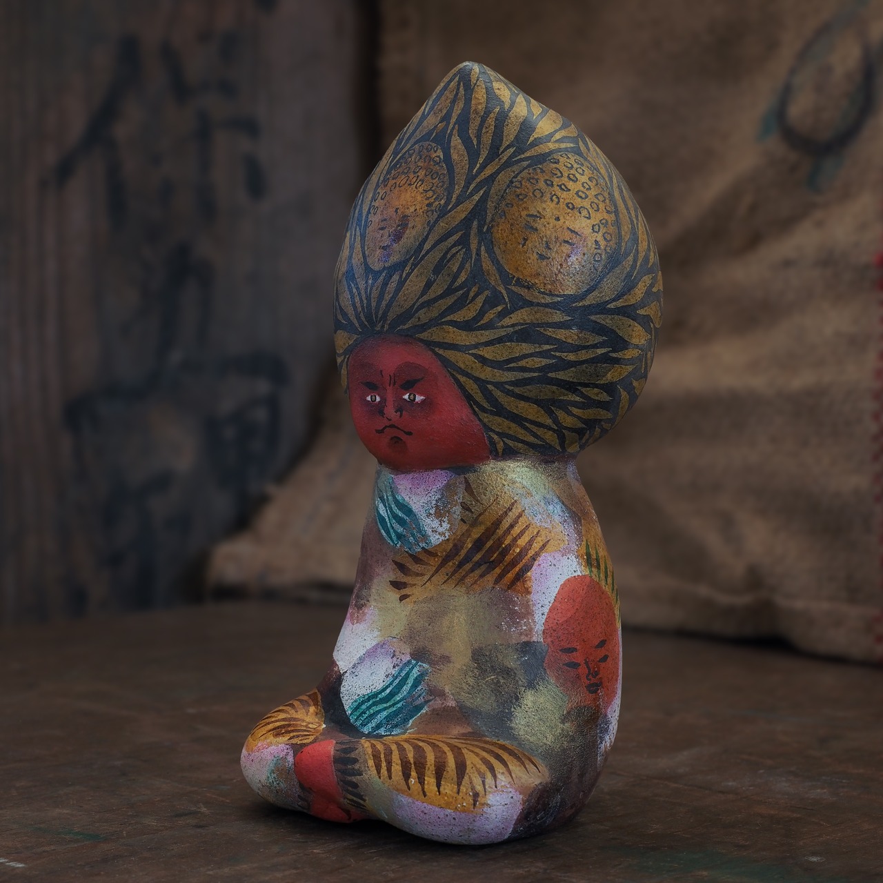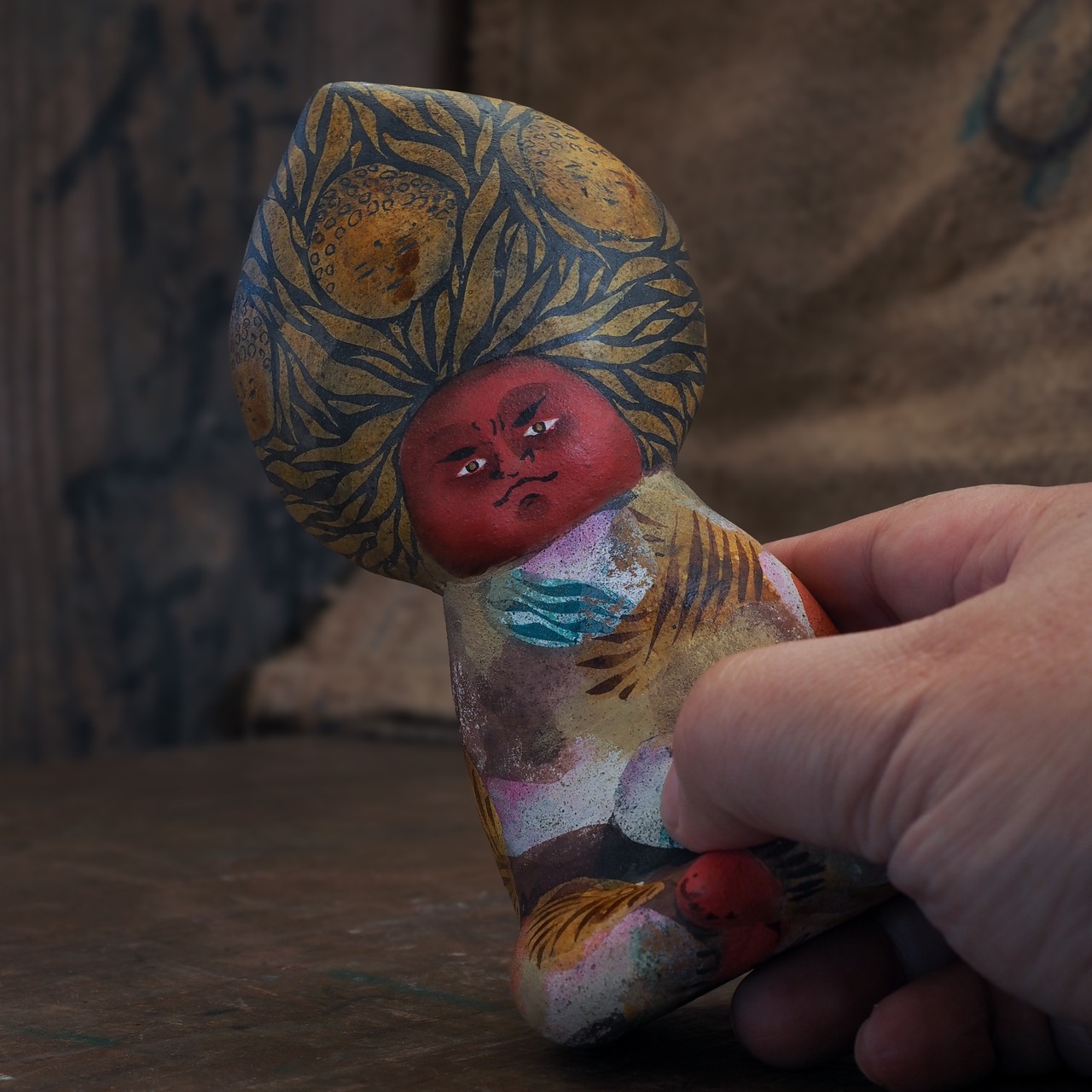 絵を描くように彩色をしたオリジナル土人形です。
