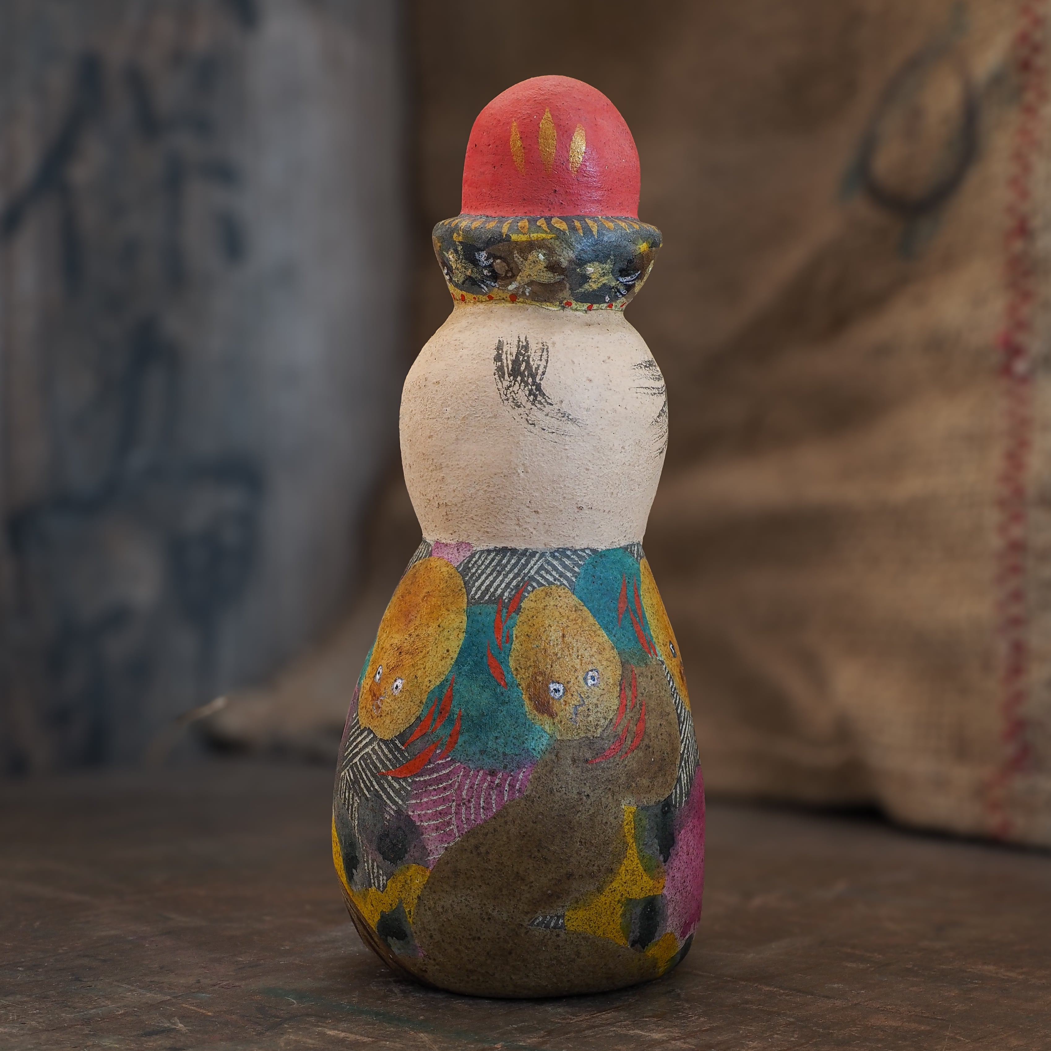 絵を描くように彩色をしたオリジナル土人形です。