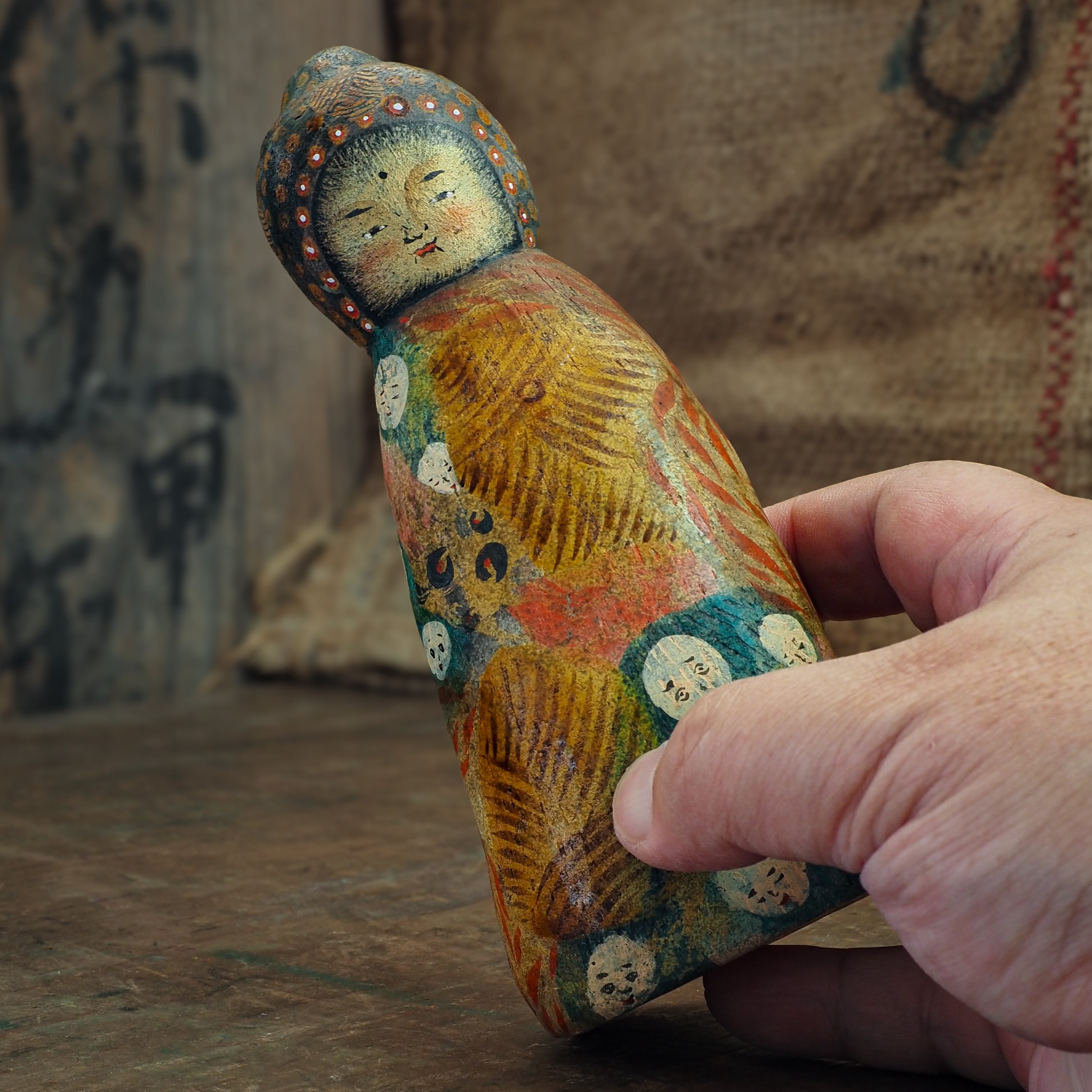 絵を描くように彩色をしたオリジナル土人形です。
