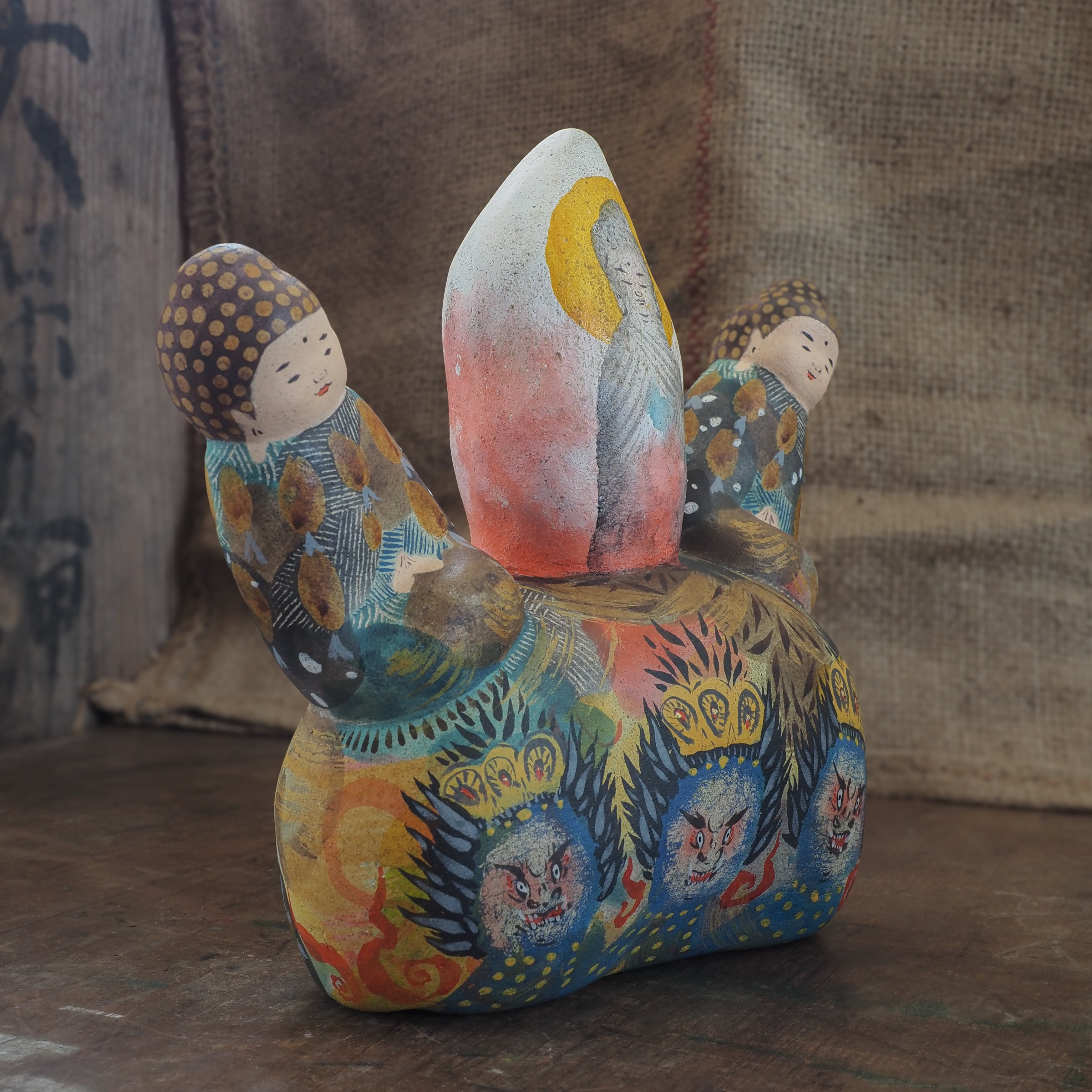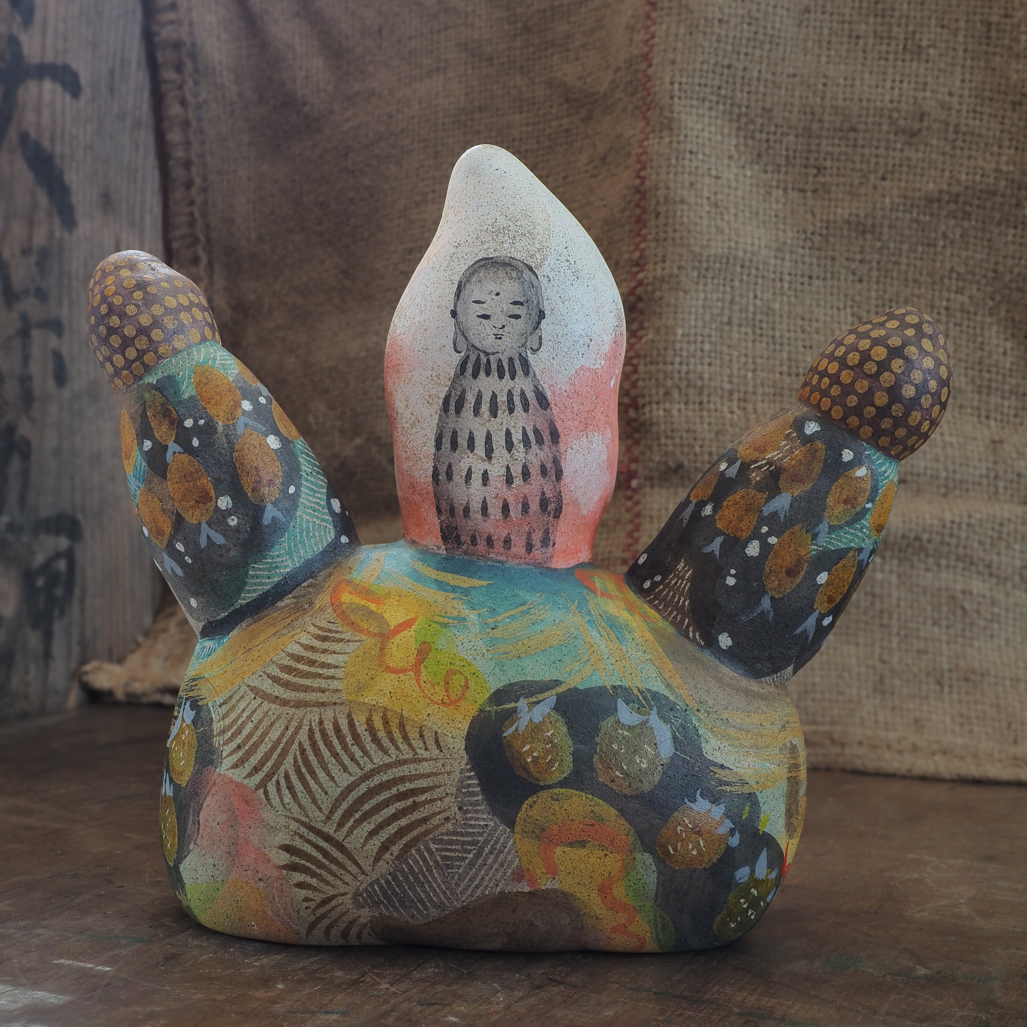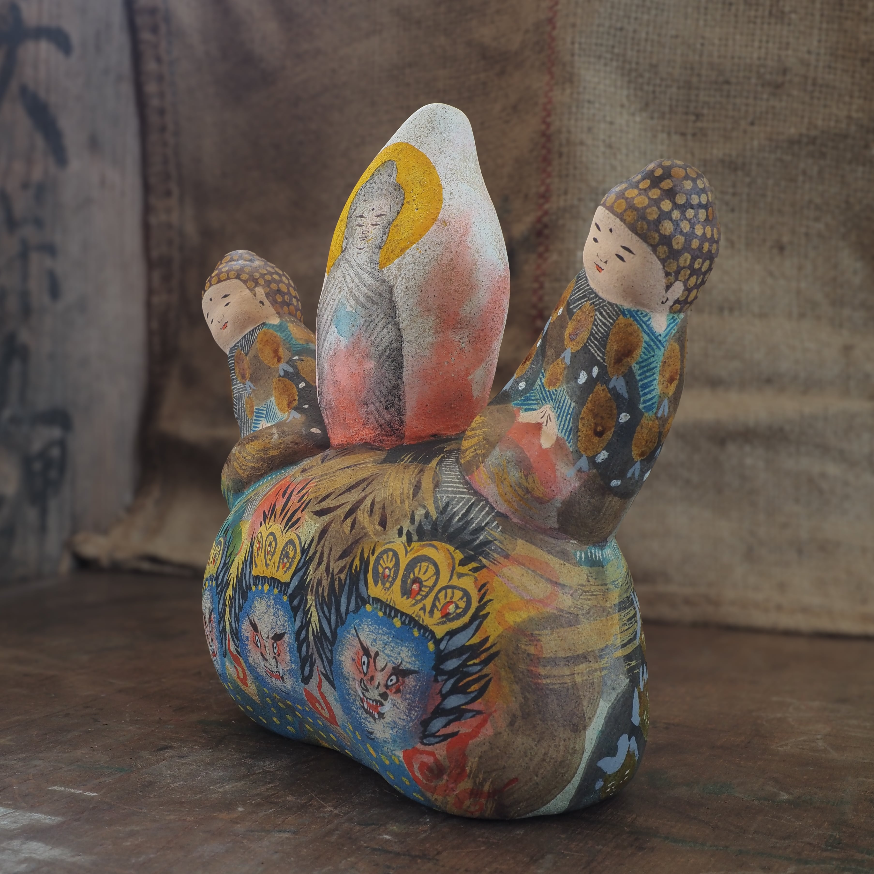 絵を描くように彩色をしたオリジナル土人形です。