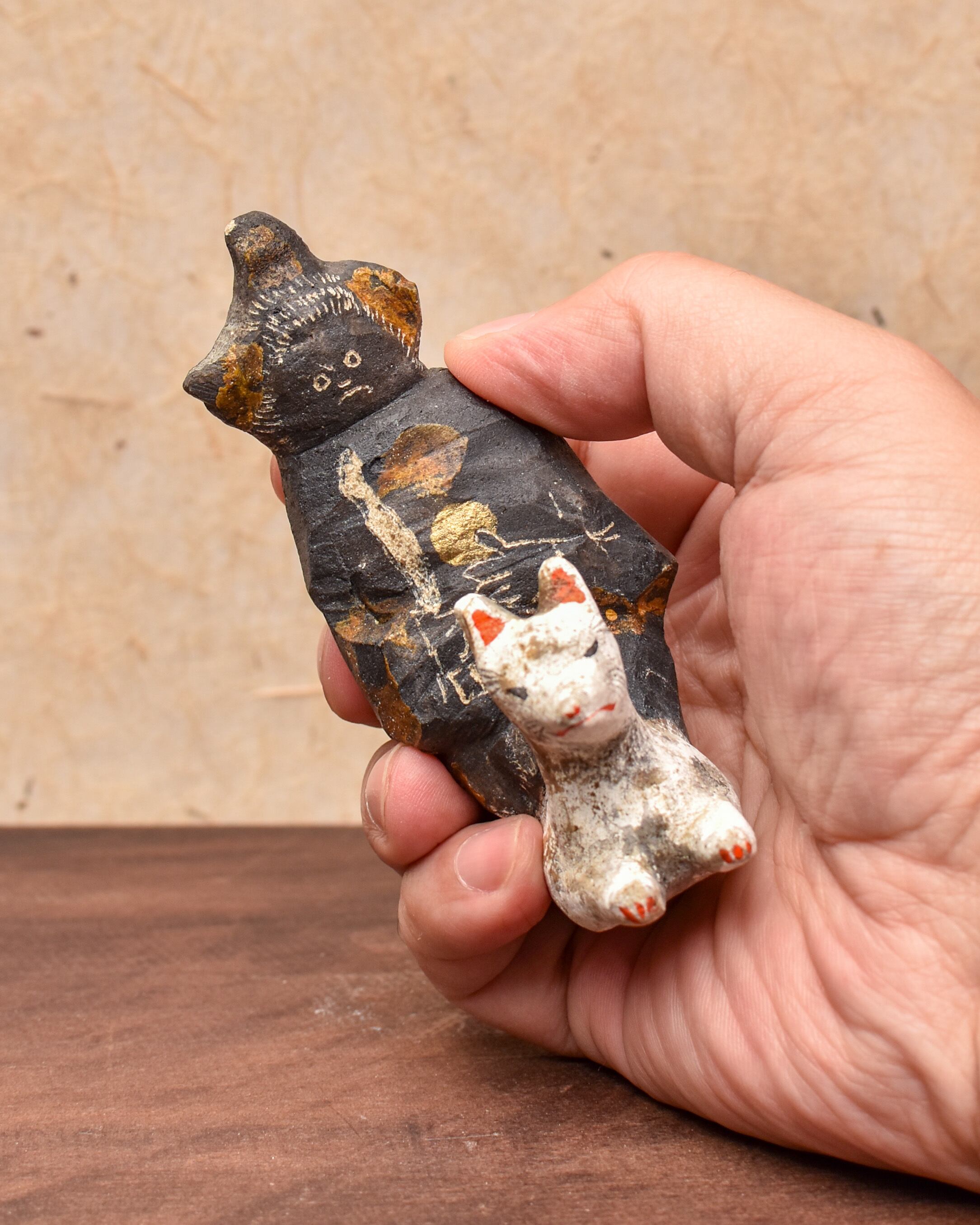 素焼き後、絵を描くように彩色をしたオリジナル土人形です。