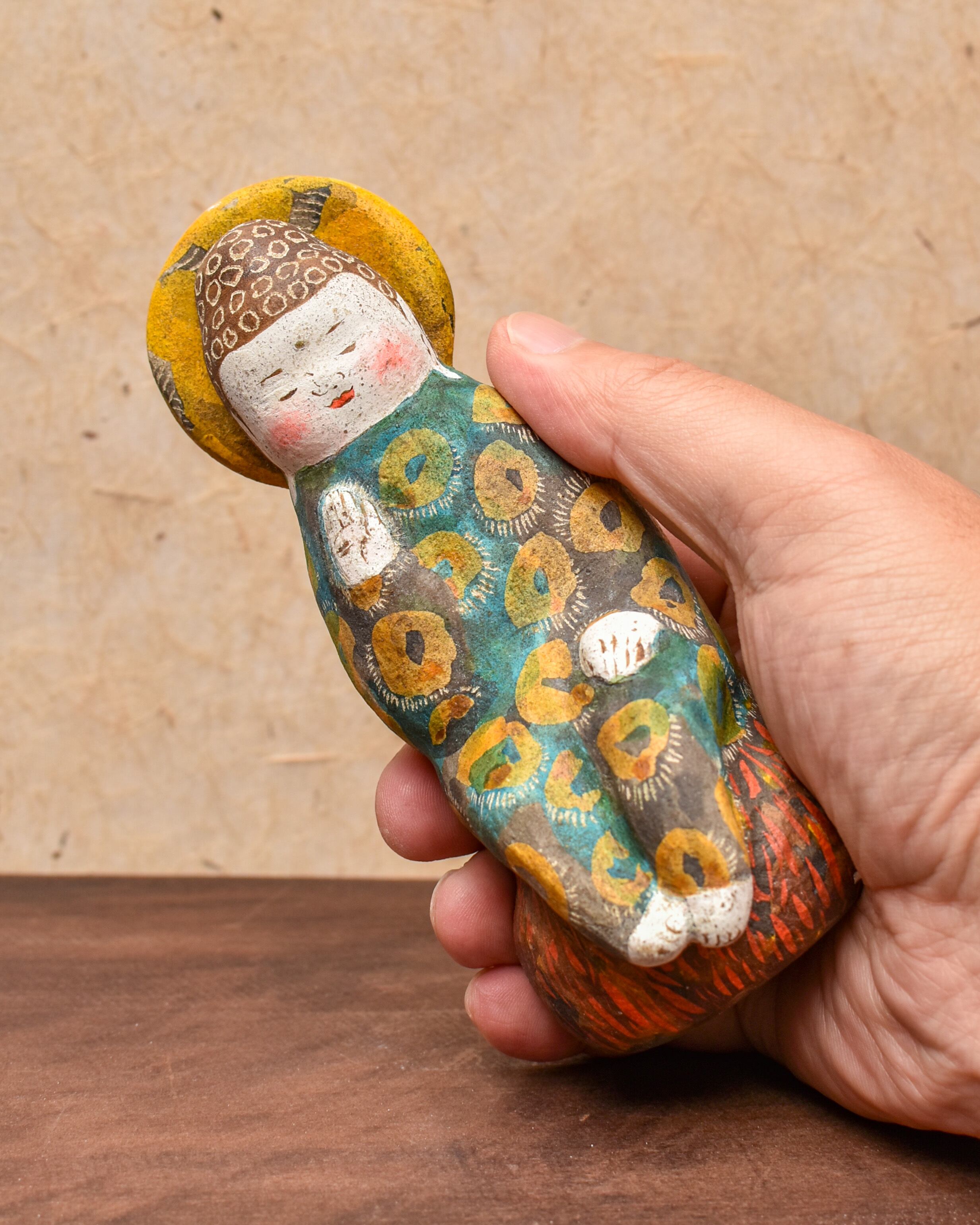 素焼き後、絵を描くように彩色をしたオリジナル土人形です。