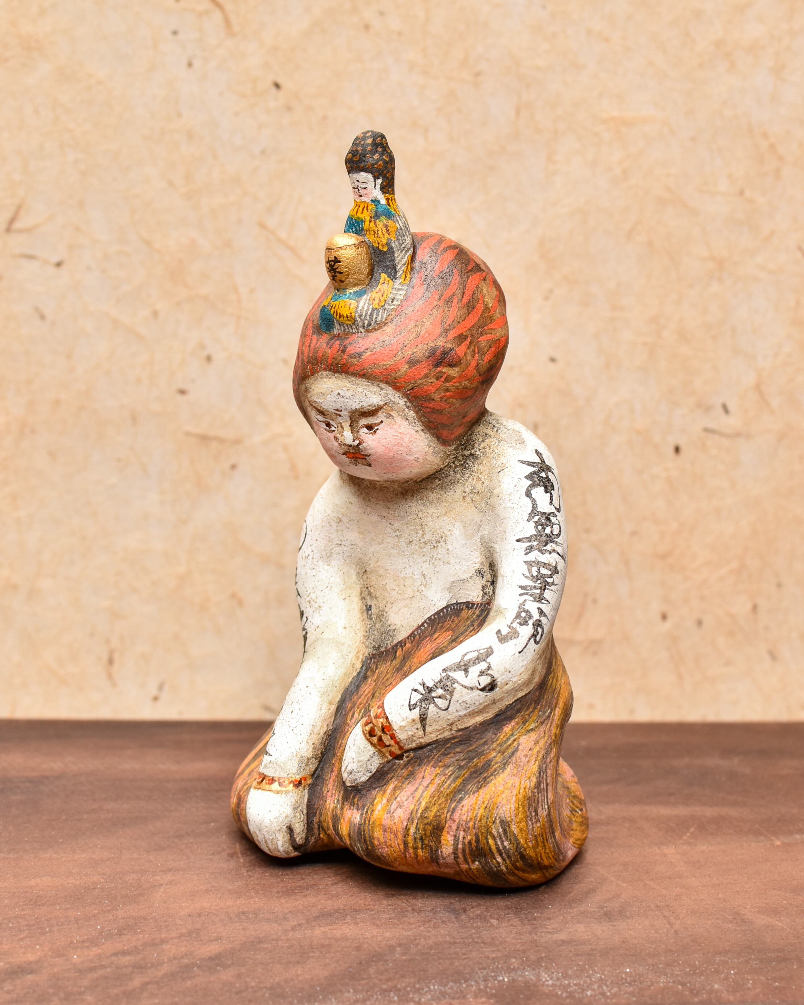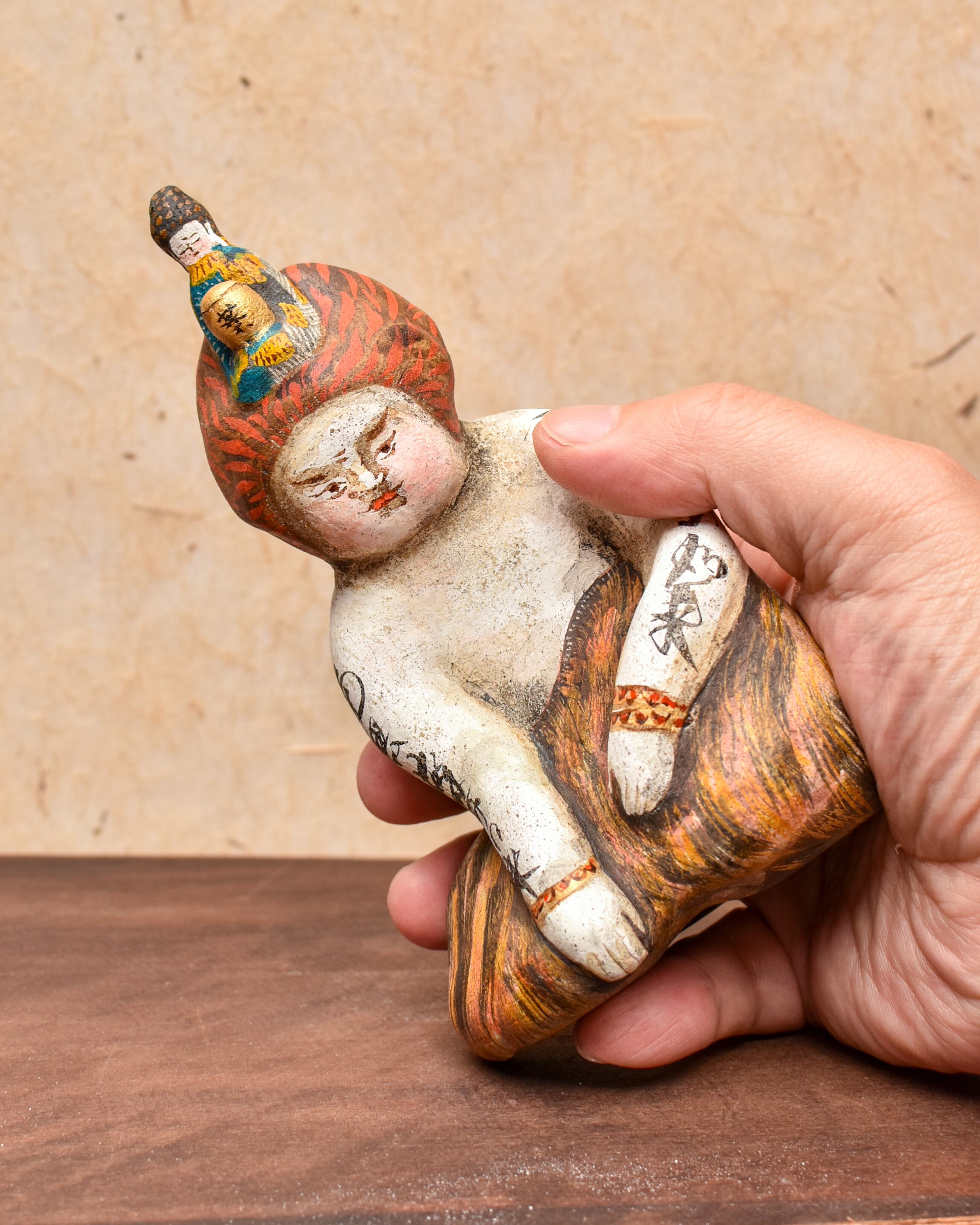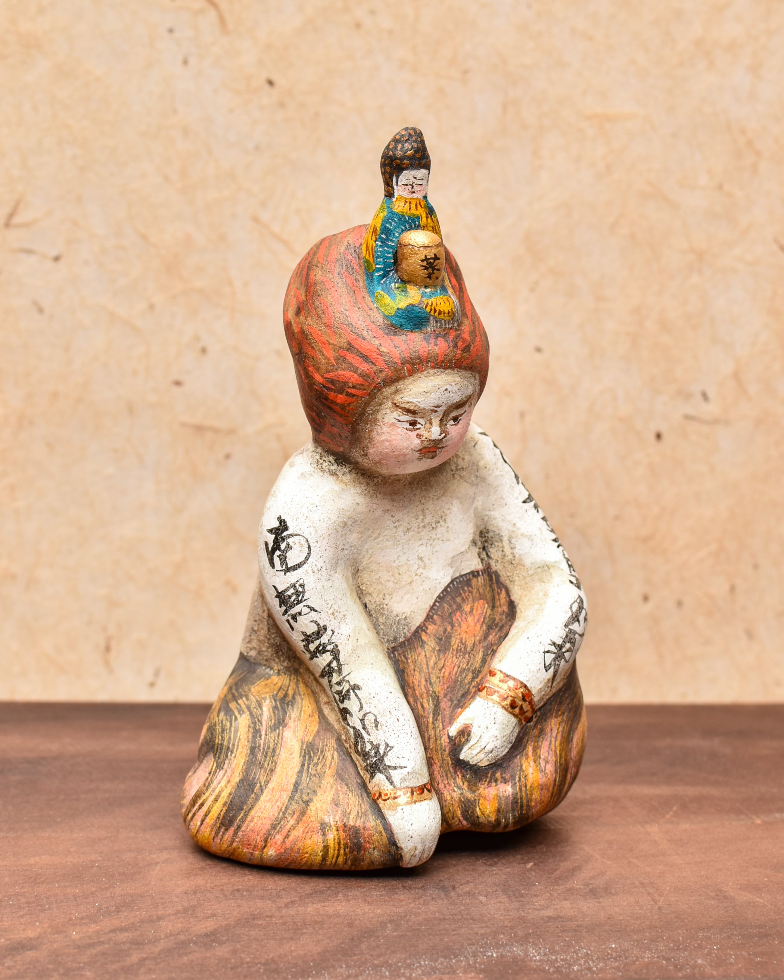 素焼き後、絵を描くように彩色をしたオリジナル土人形です。