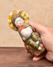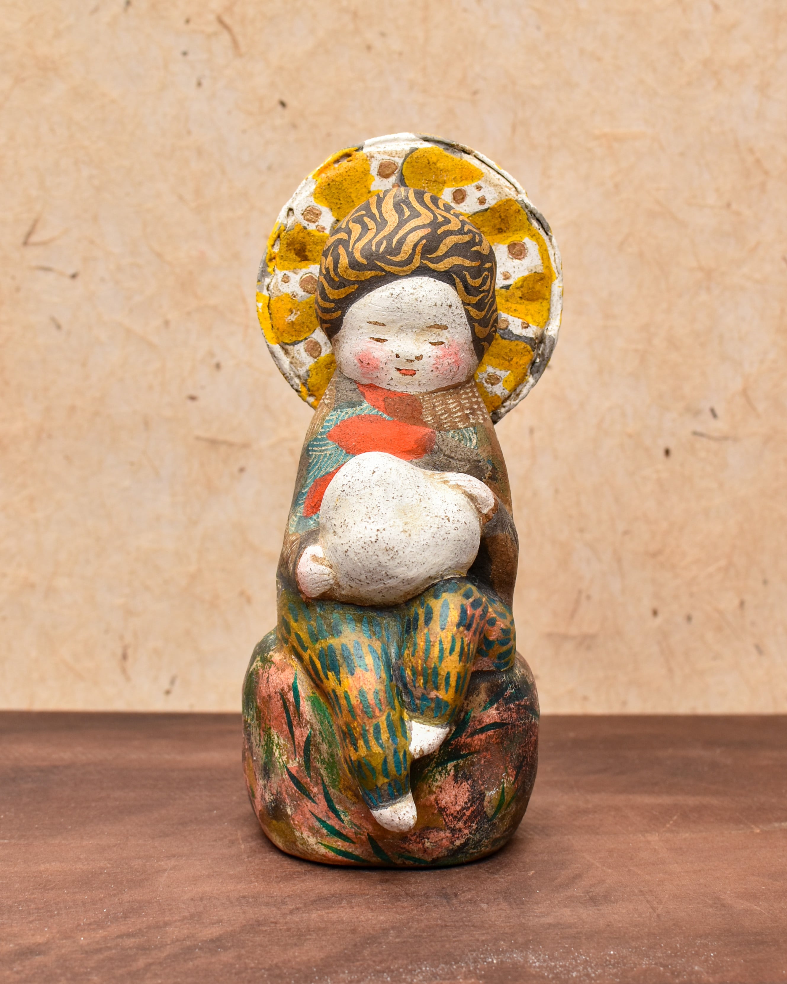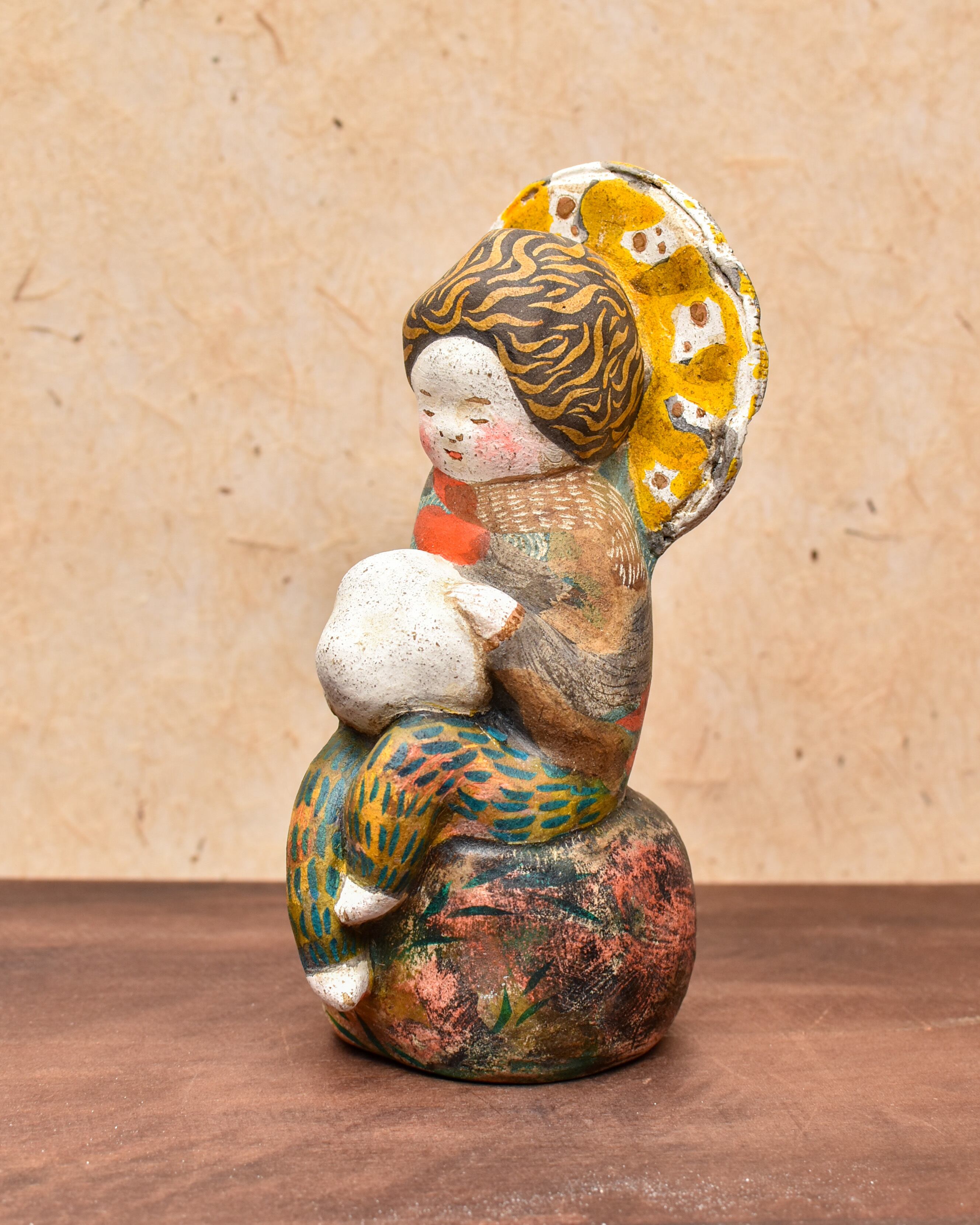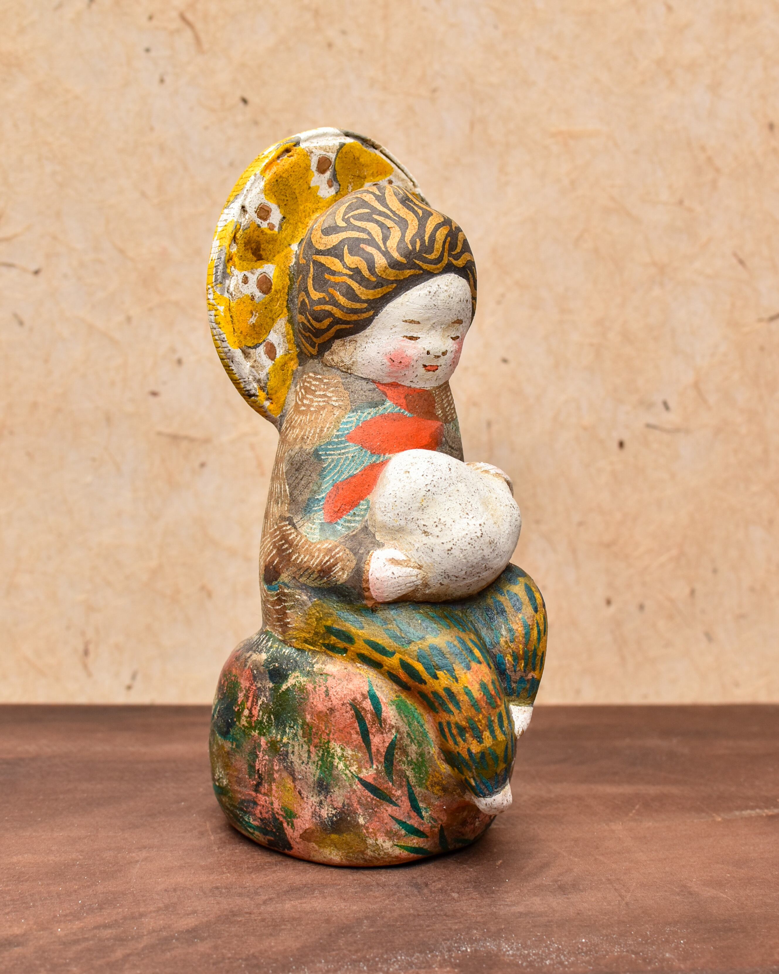 素焼き後、絵を描くように彩色をしたオリジナル土人形です。
