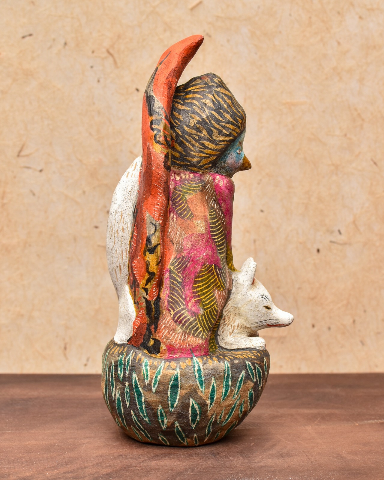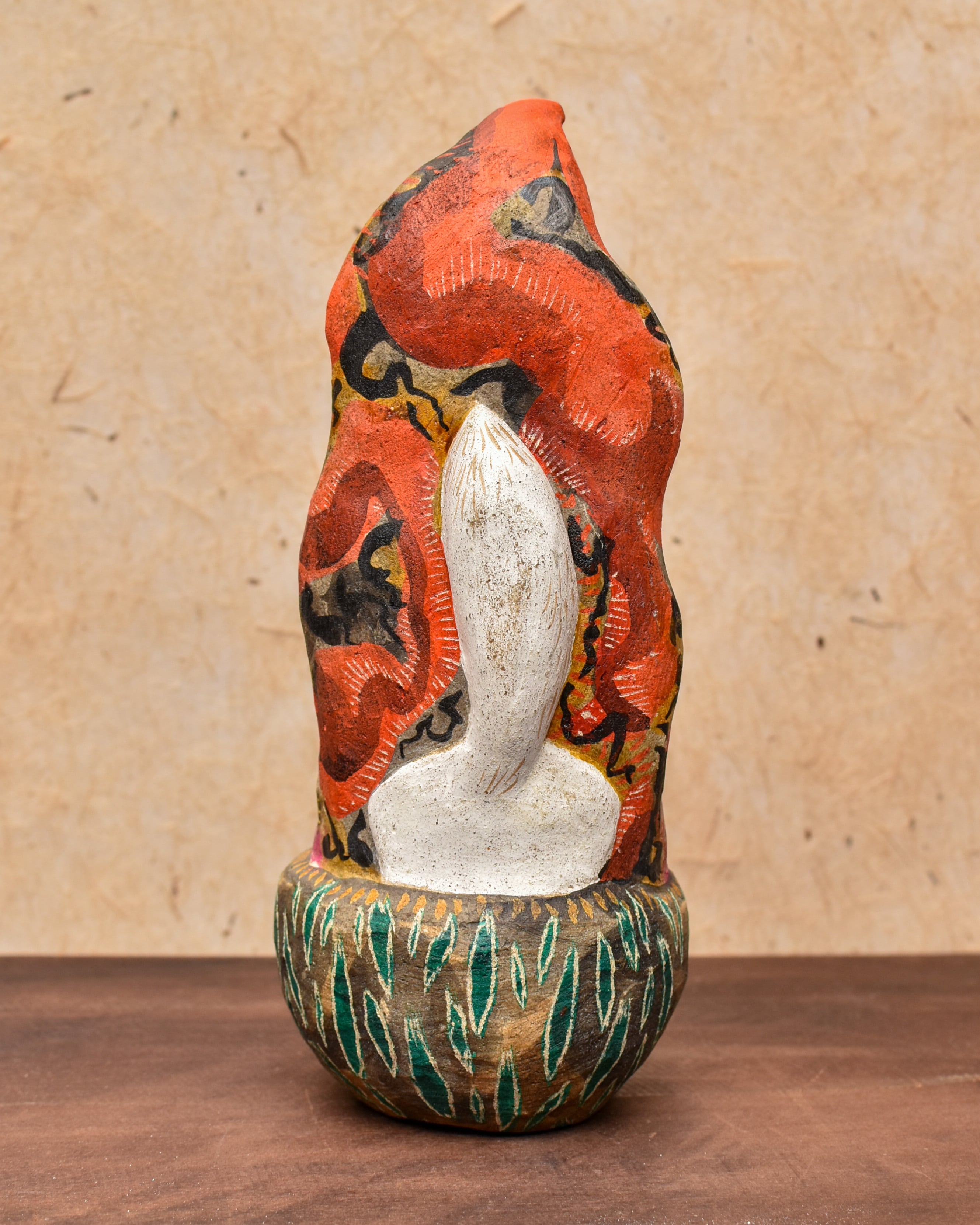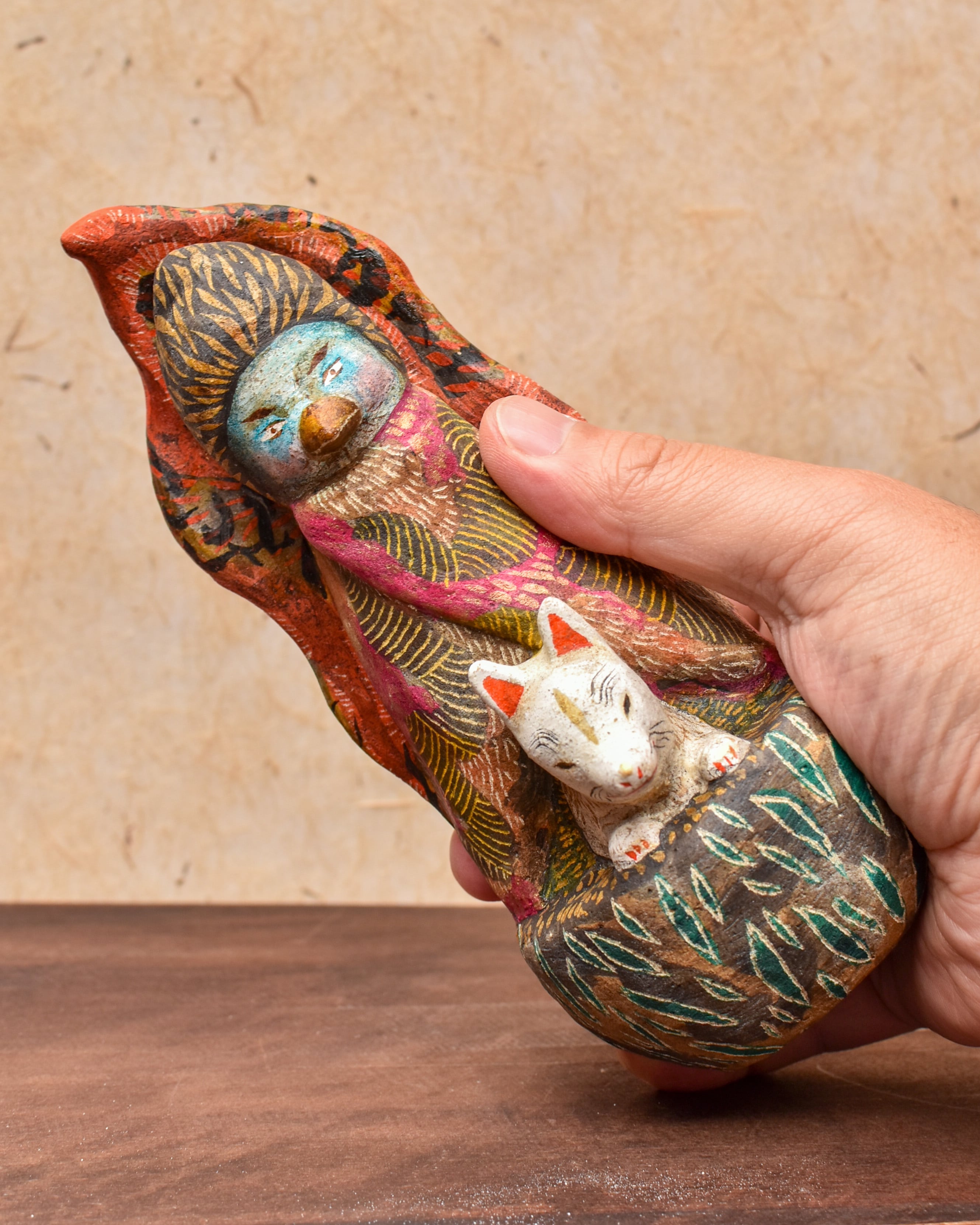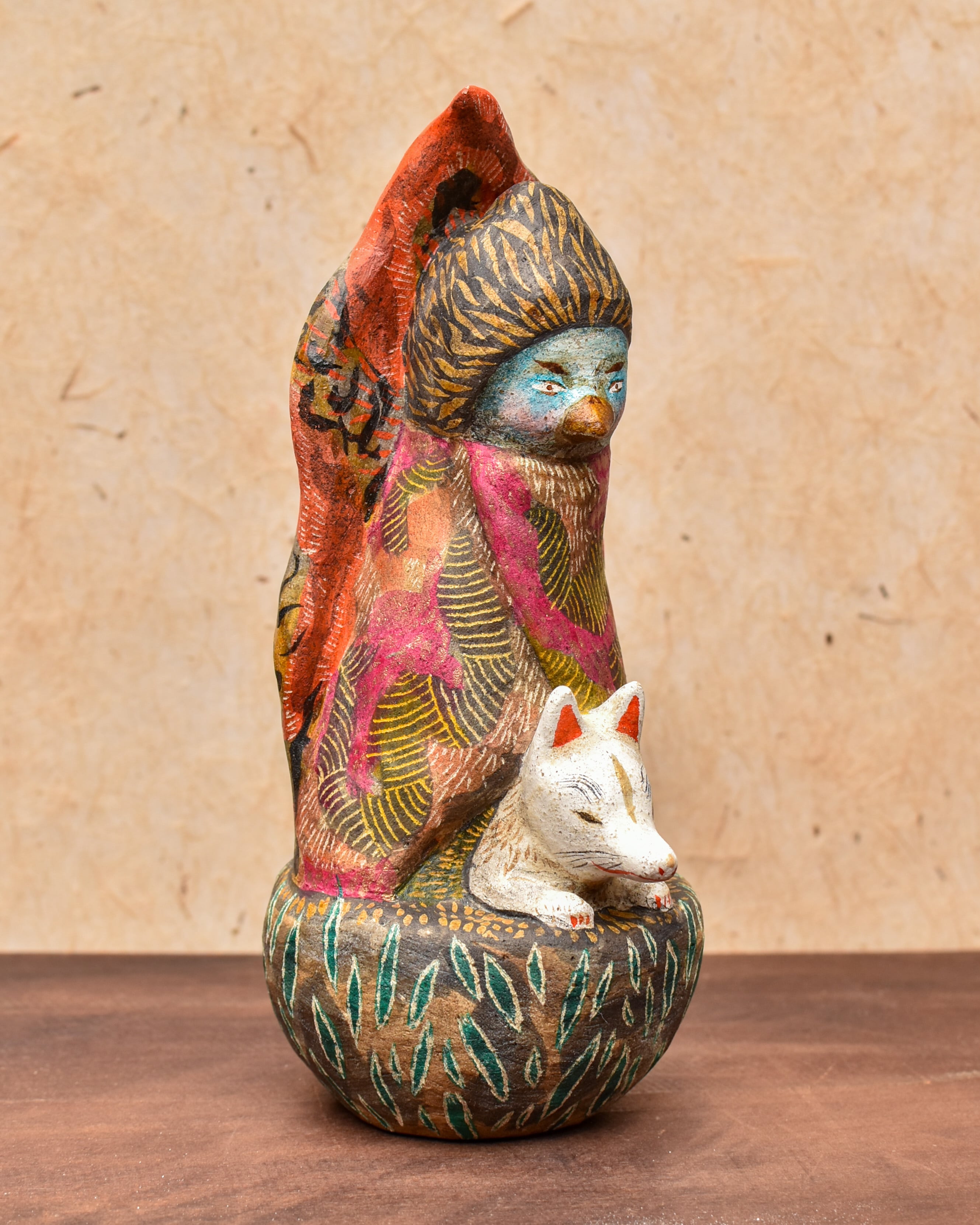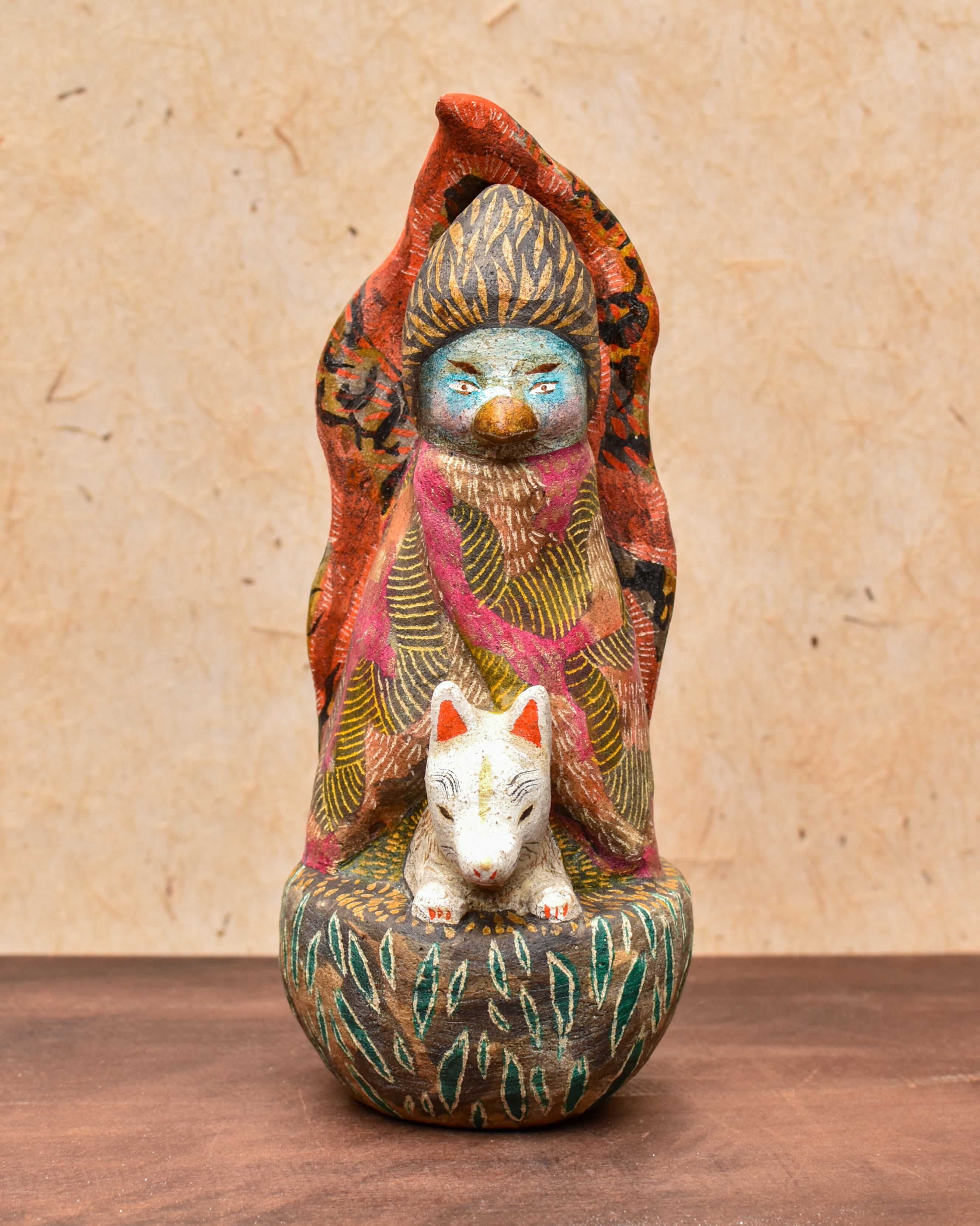 素焼き後、絵を描くように彩色をしたオリジナル土人形です。