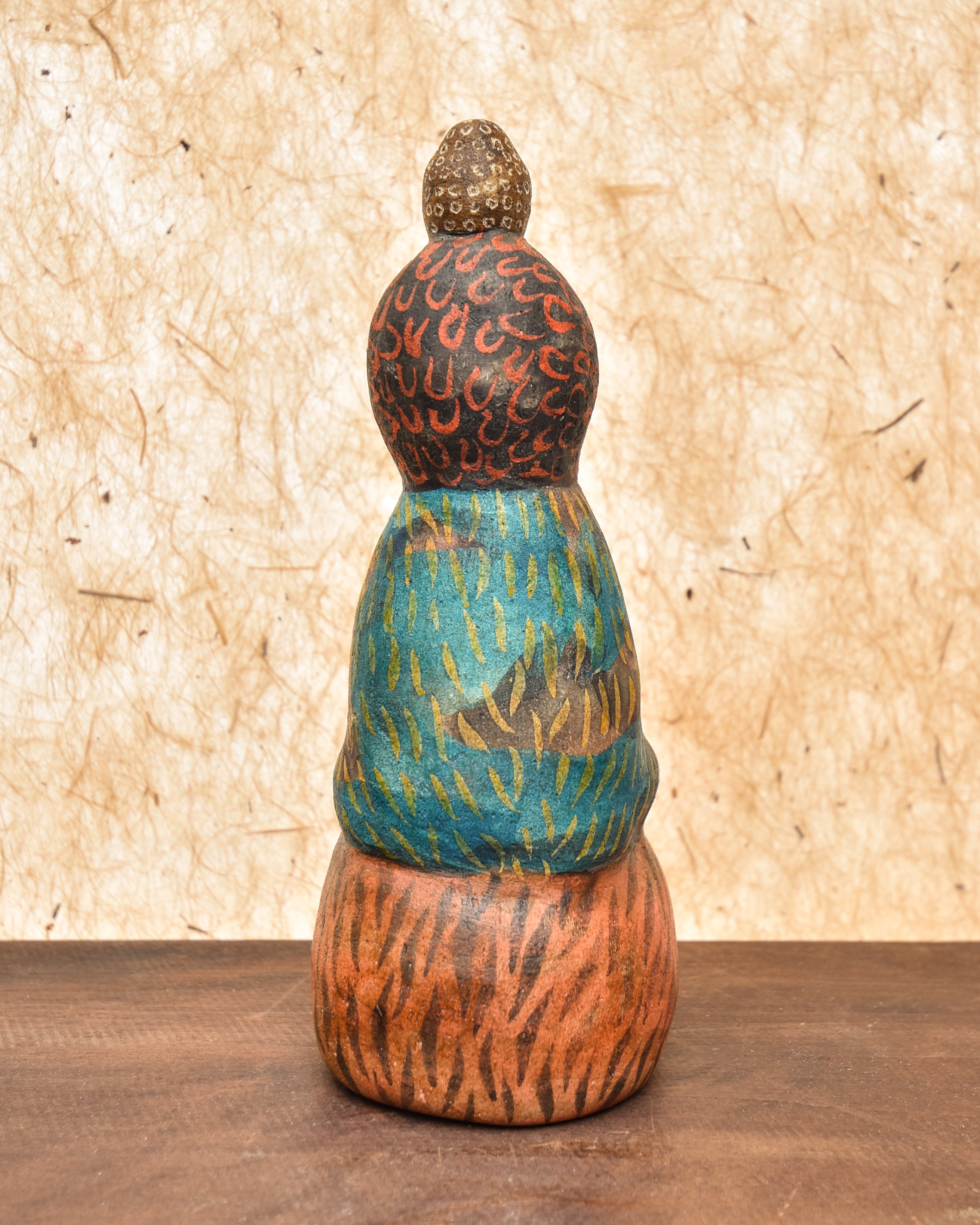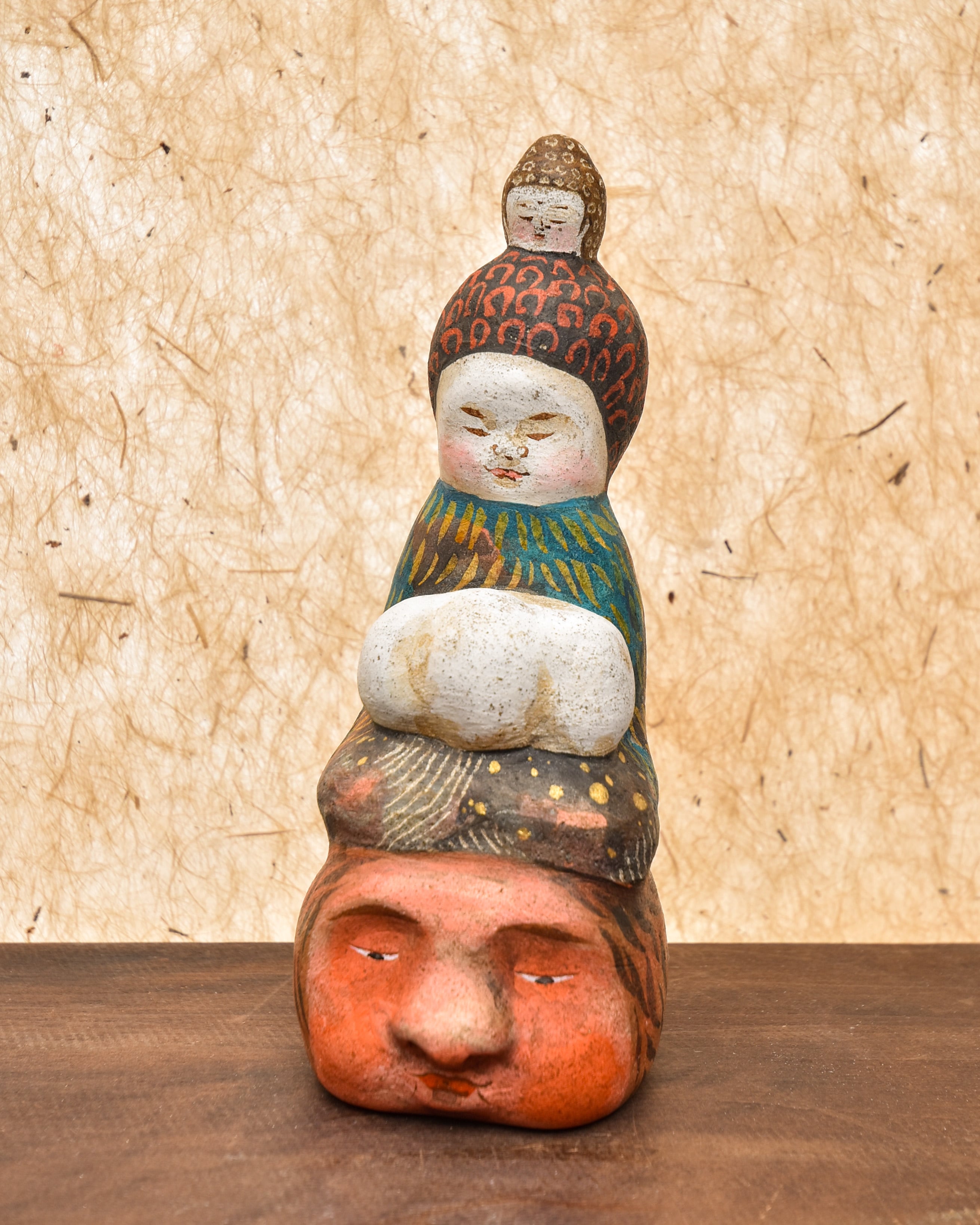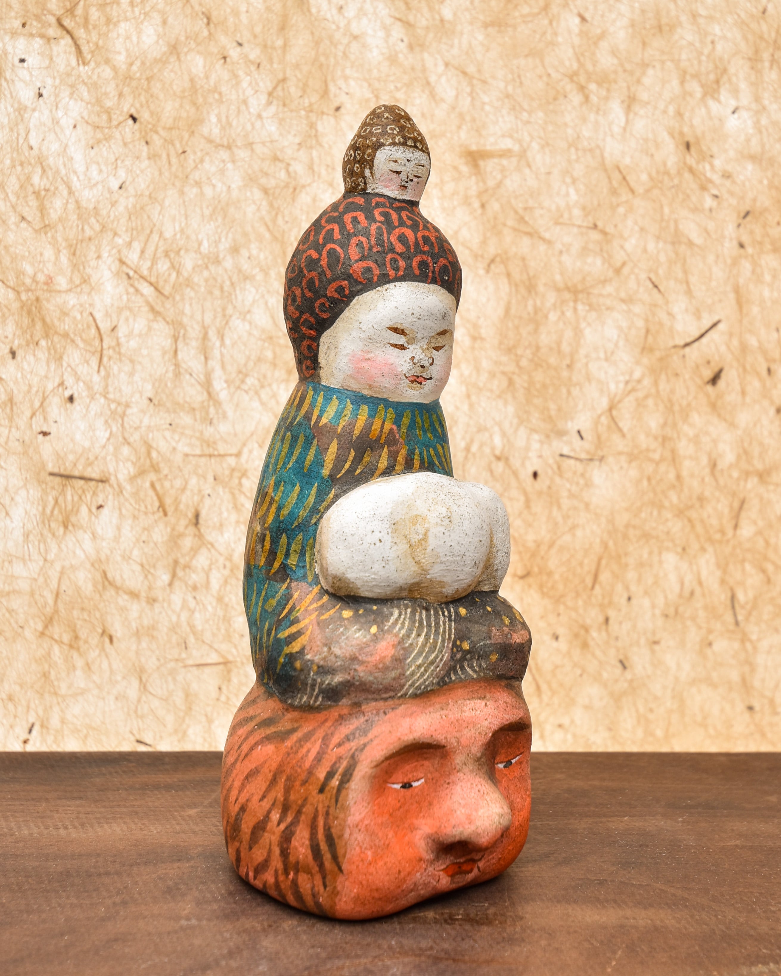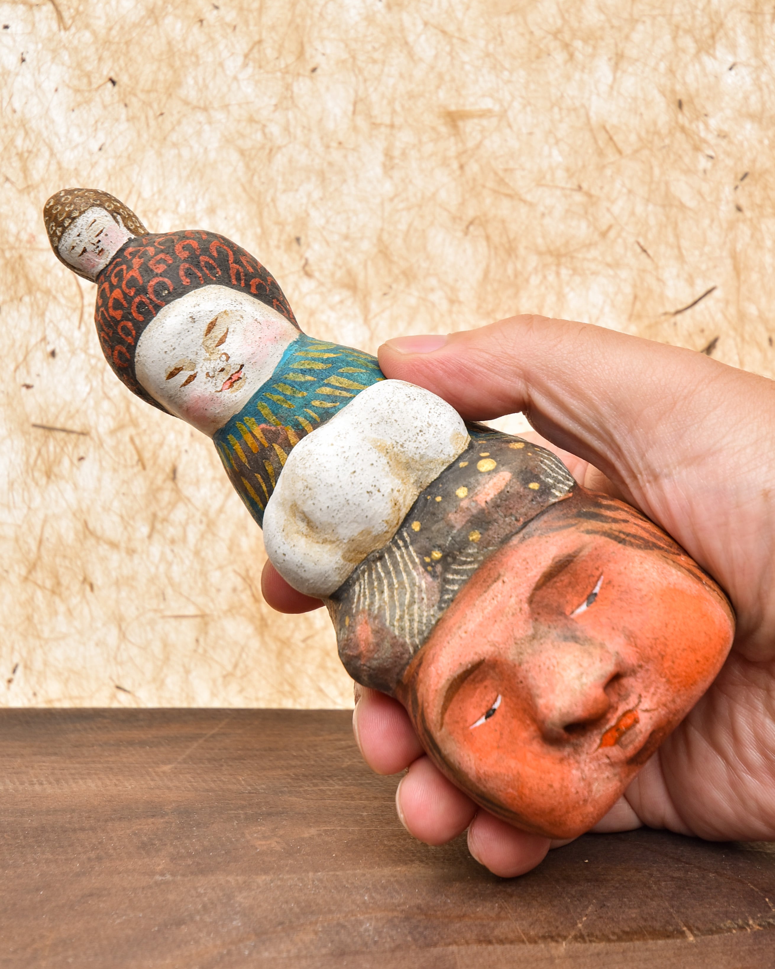 素焼き後、絵を描くように彩色をしたオリジナル土人形です。