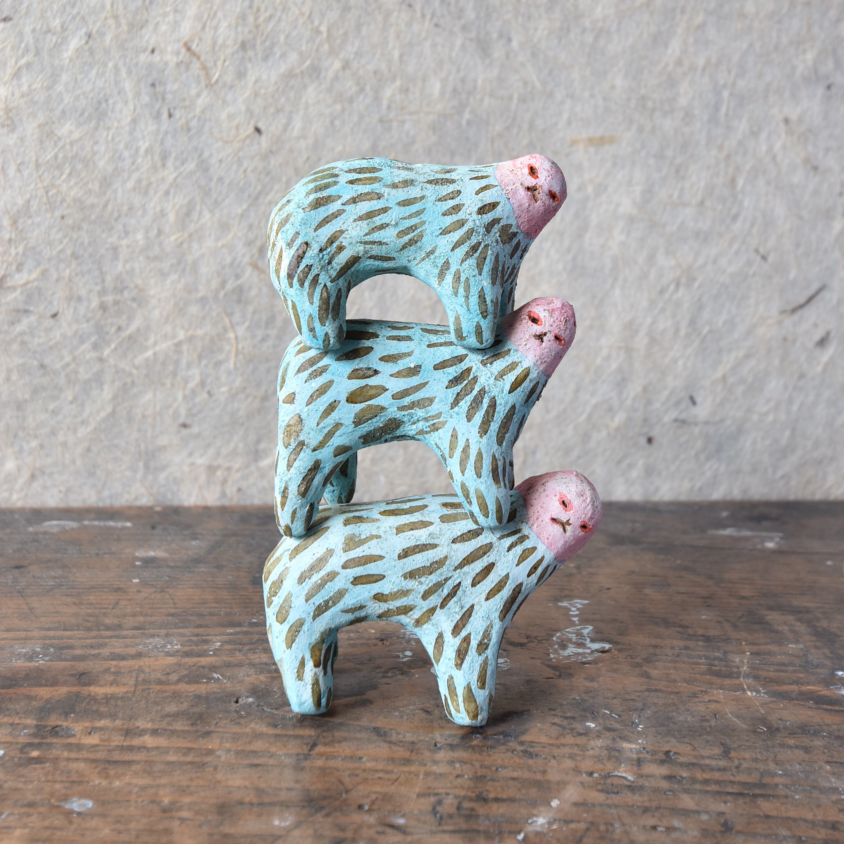 素焼き後、絵を描くように彩色をしたオリジナル土人形です。