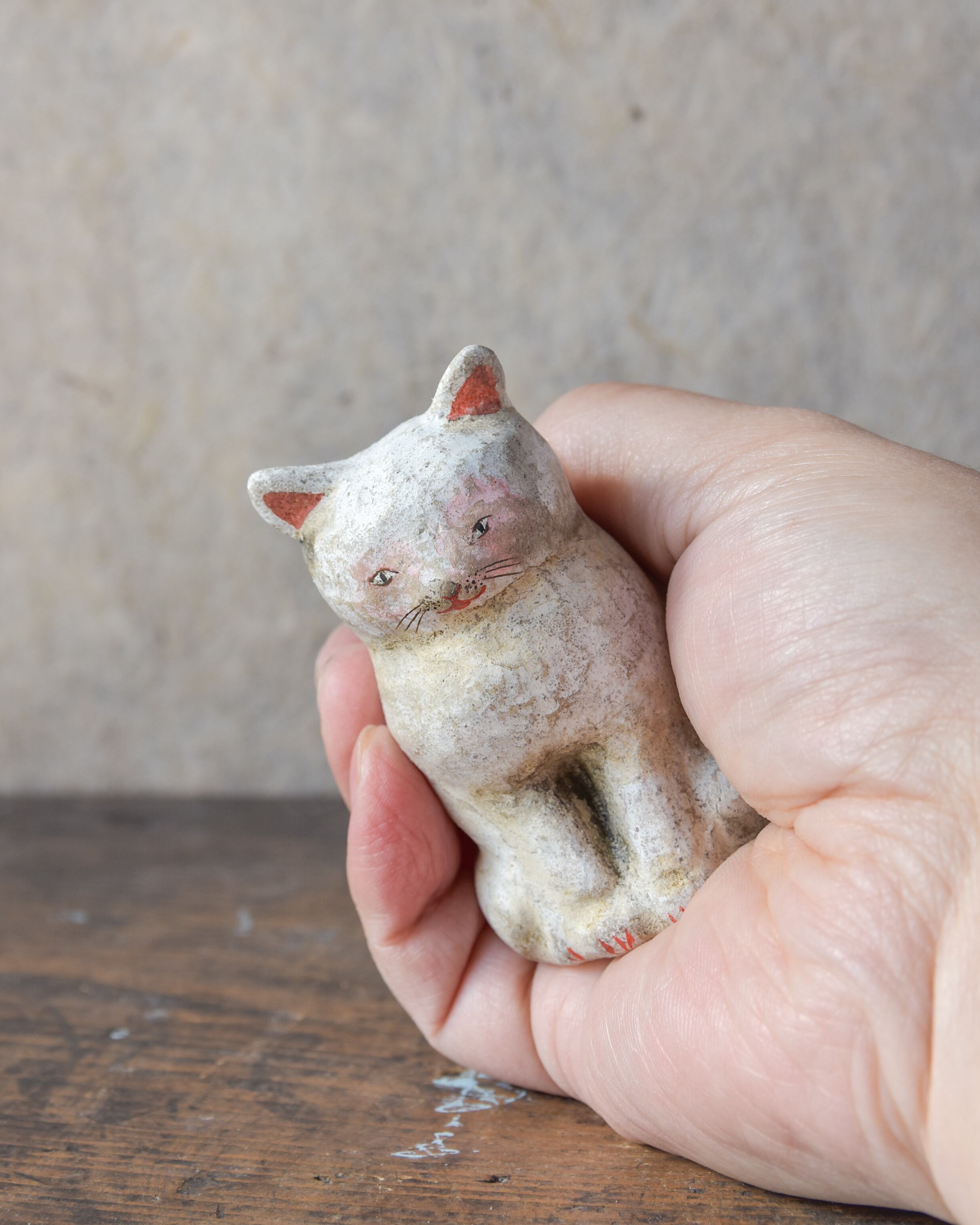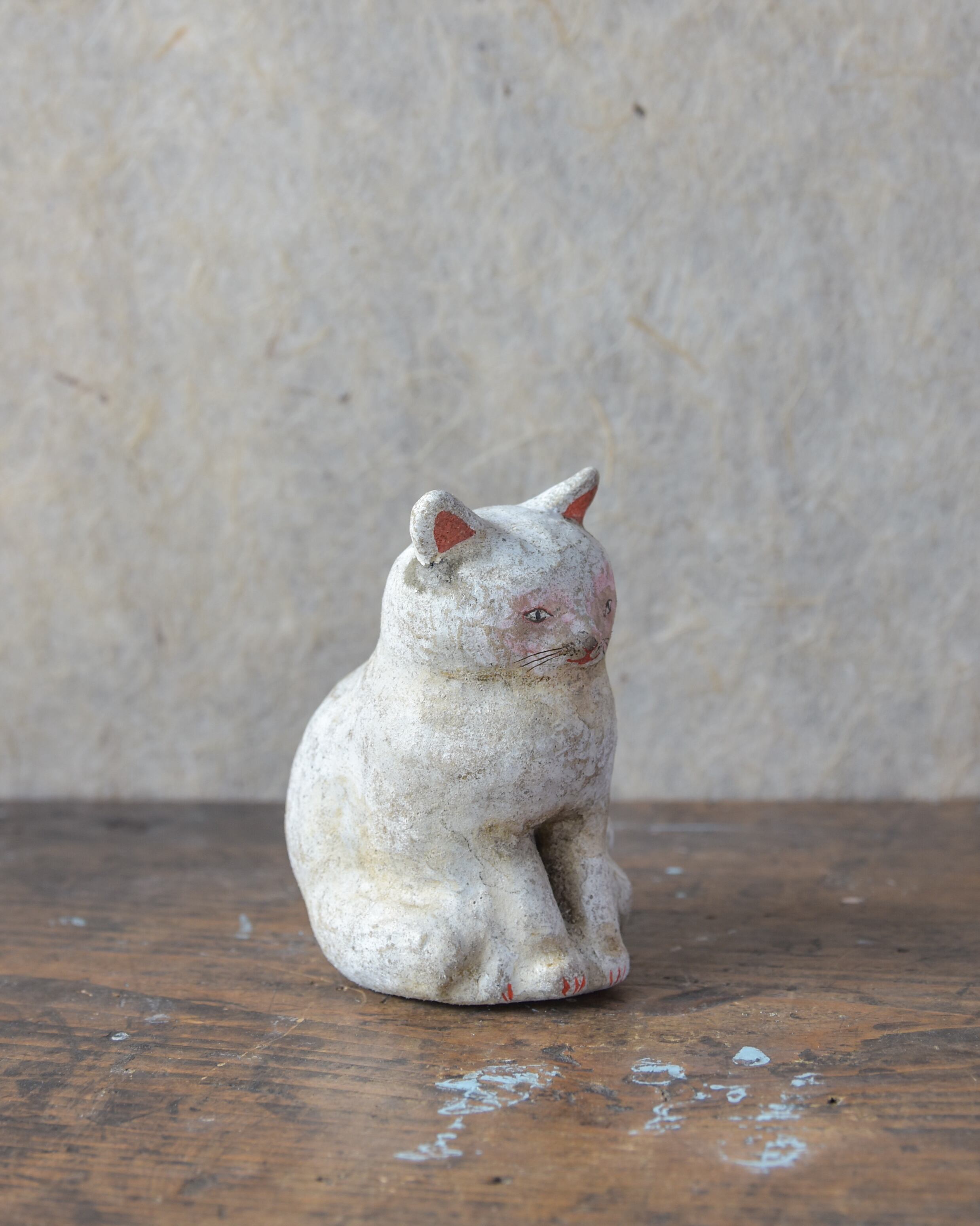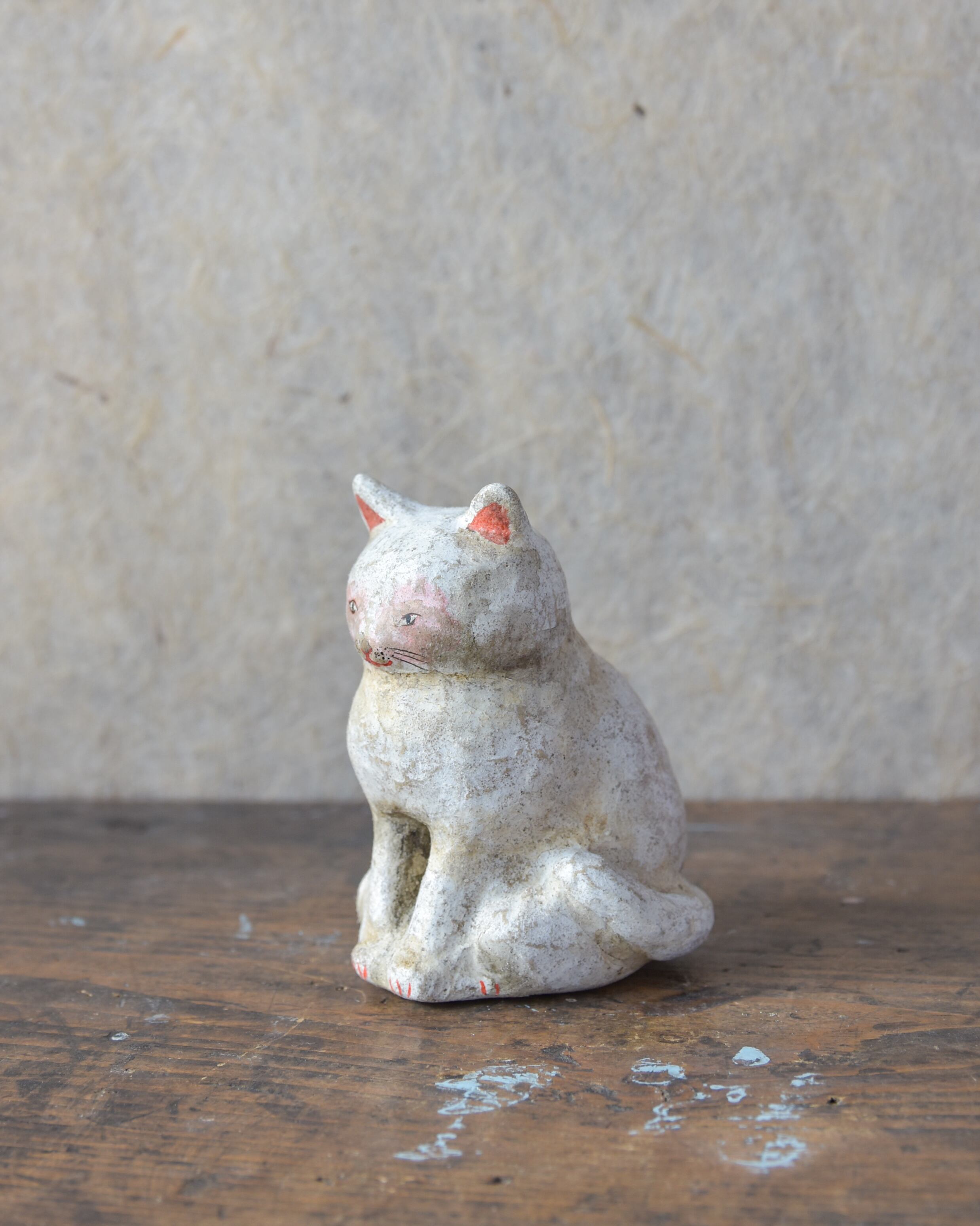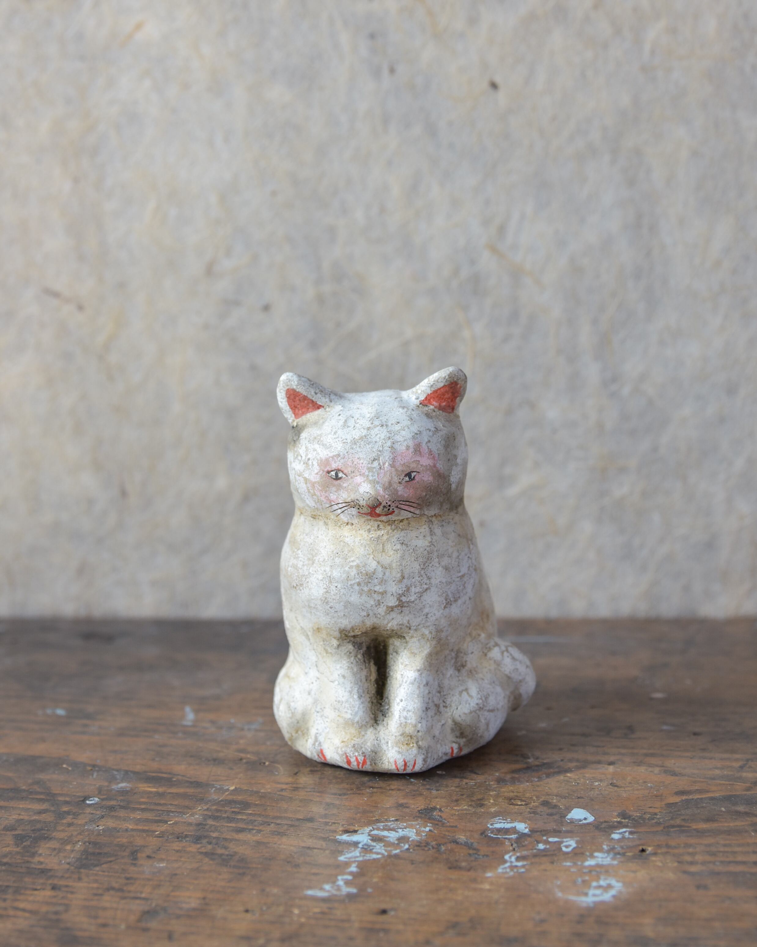 土人形【 薄汚れた白猫 】
