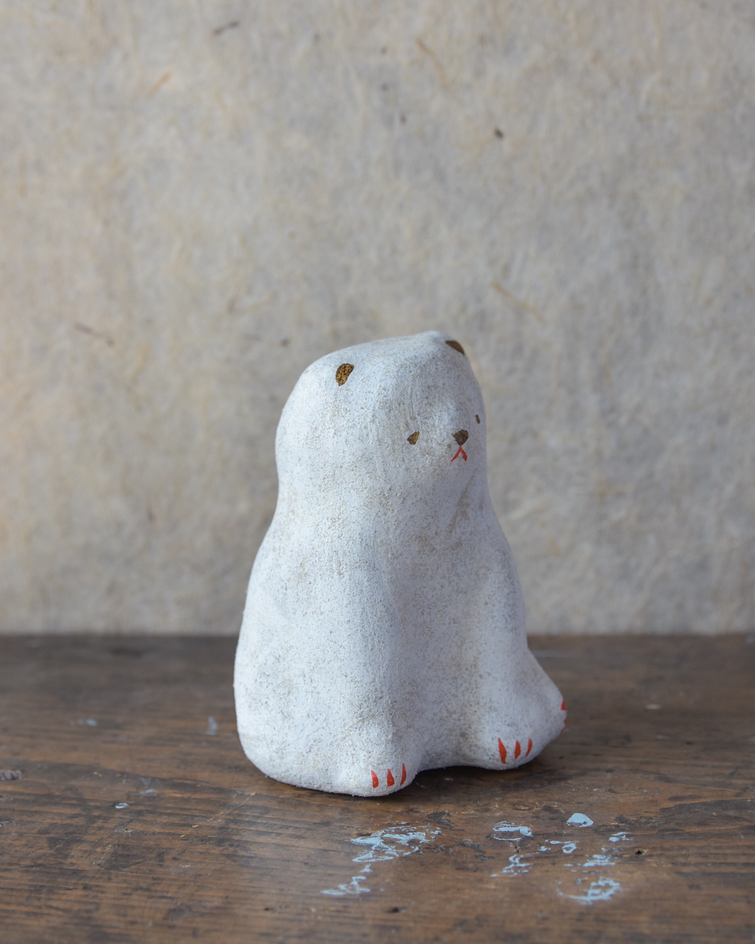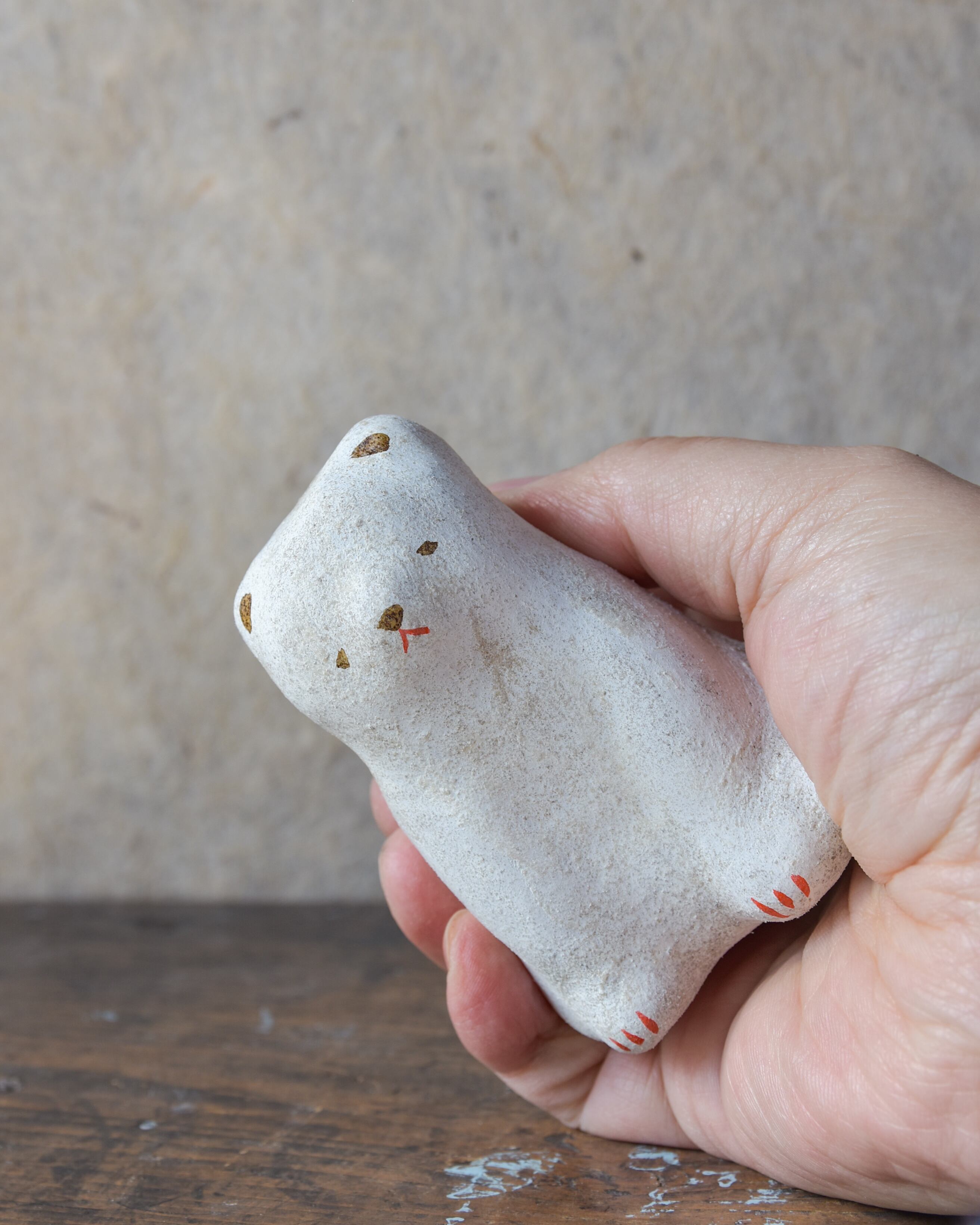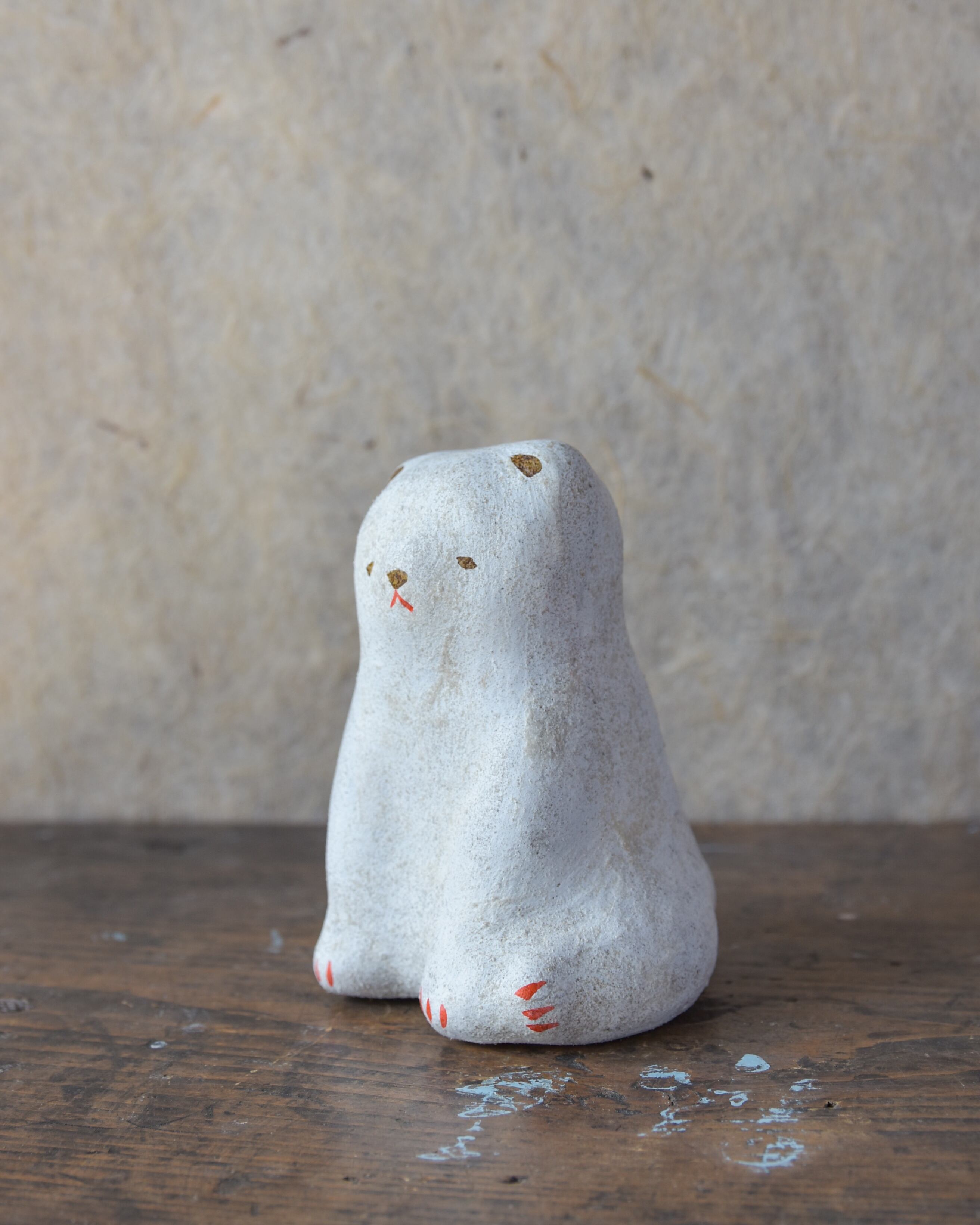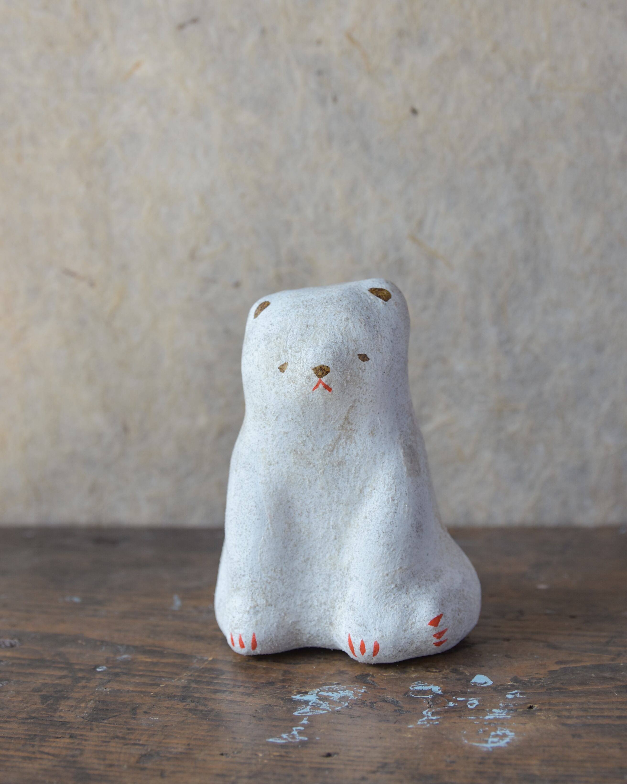オーブン陶土で造形後、焼成し、絵を描く際と同じ画材を用いて彩色、削り等を施し完成させたオリジナル土人形です。