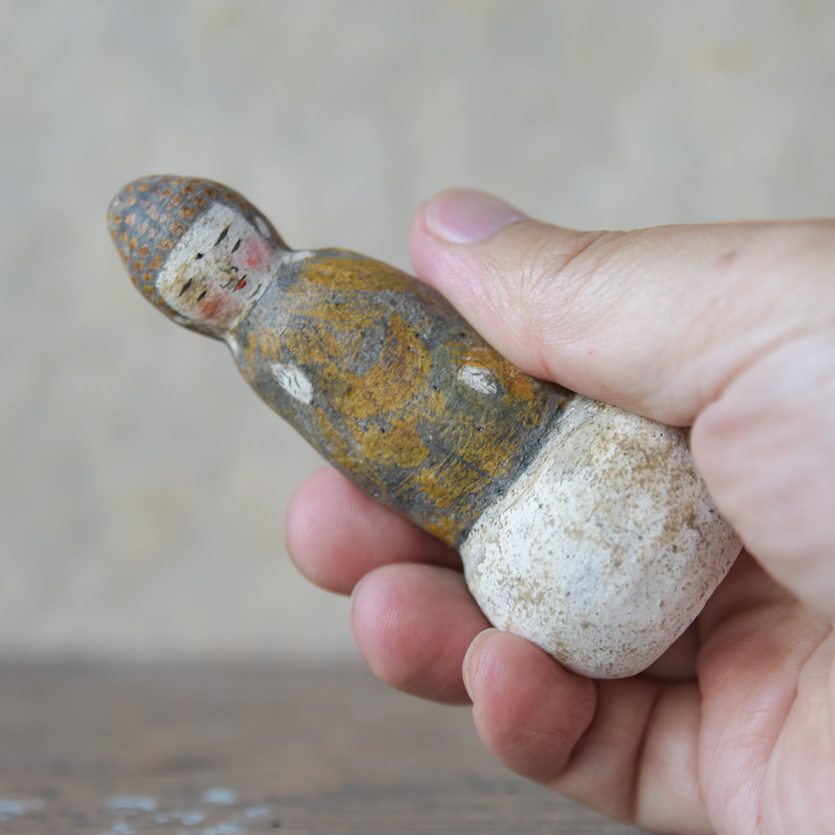 素焼き後、絵を描くように彩色をしたオリジナル土人形です。