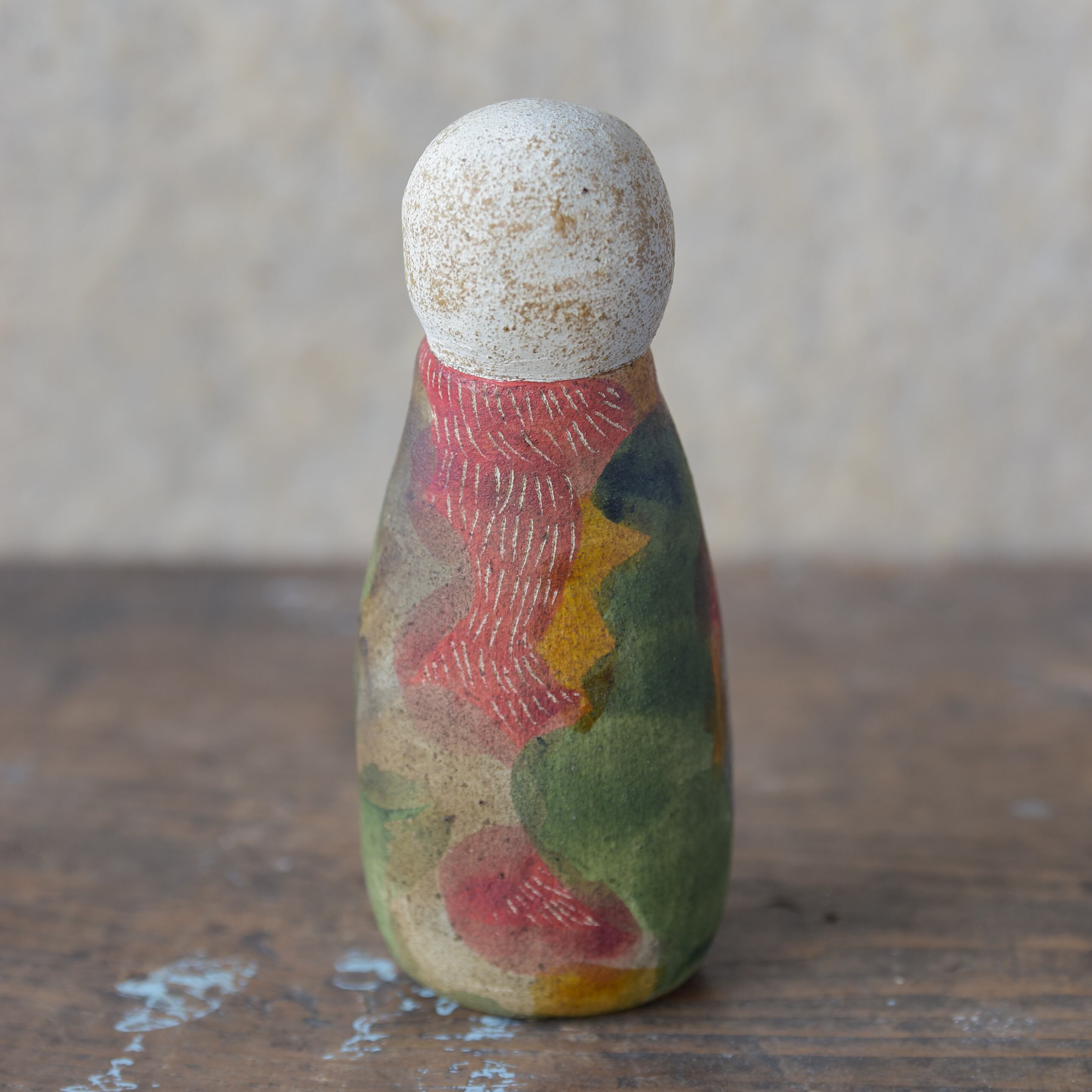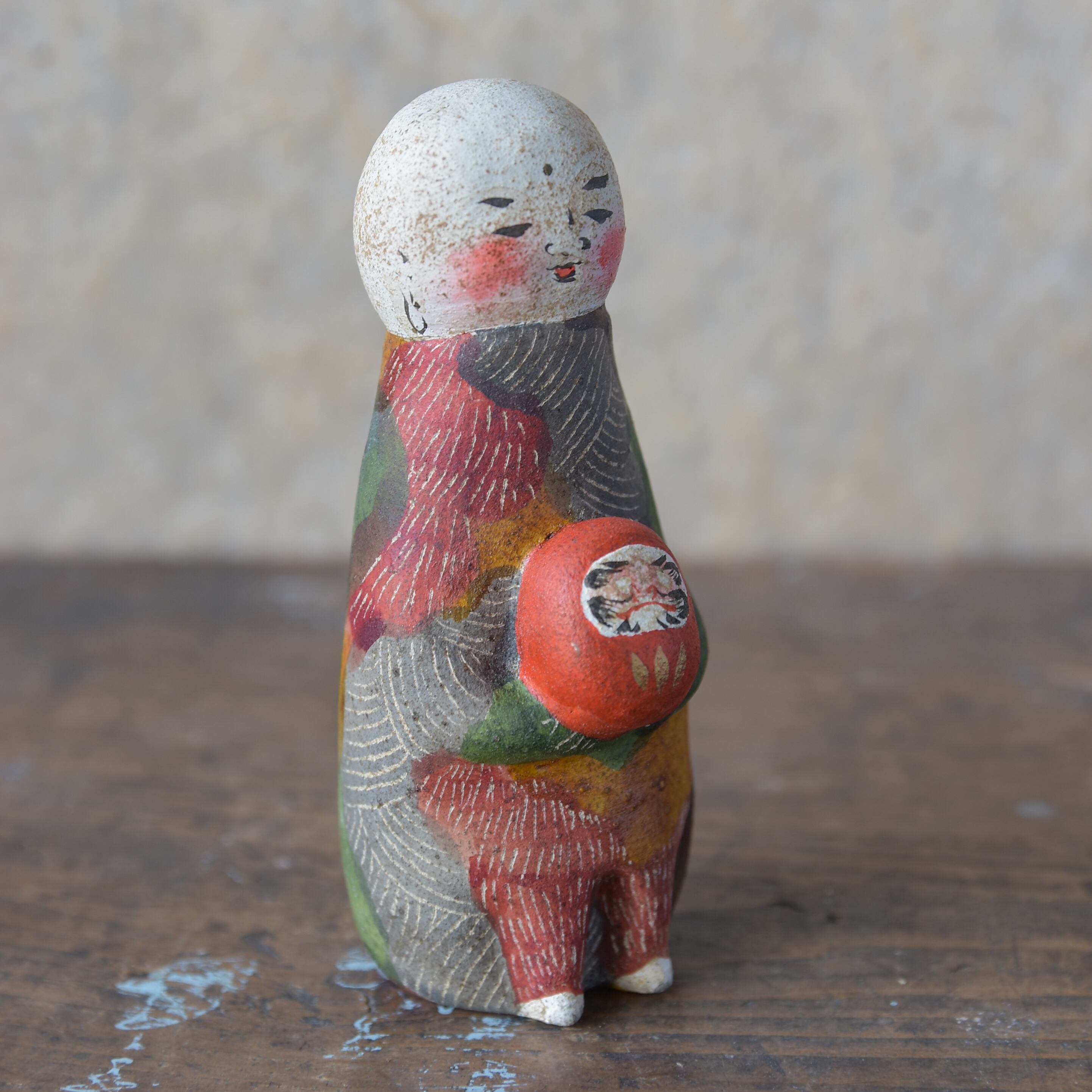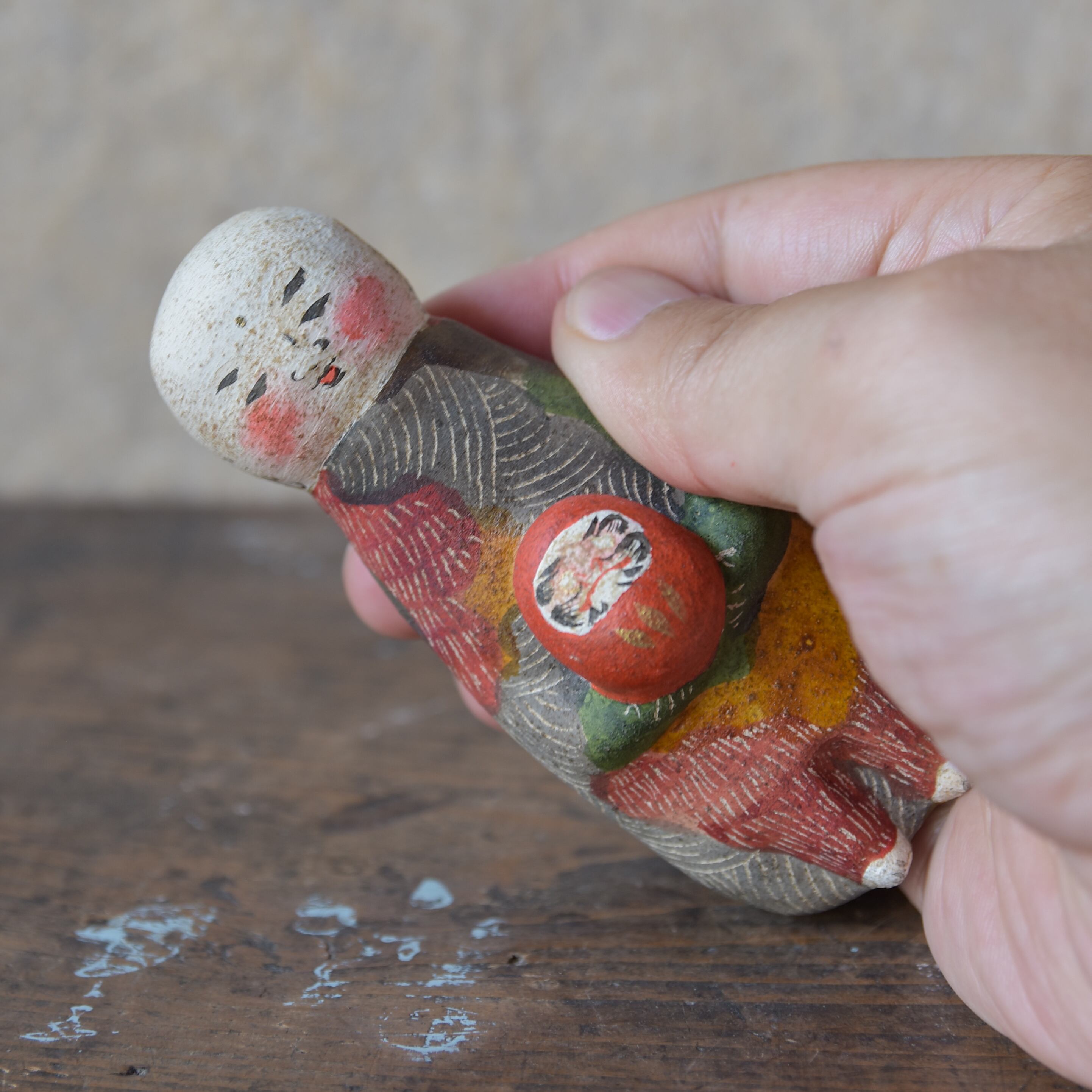 素焼き後、絵を描くように彩色をしたオリジナル土人形です。