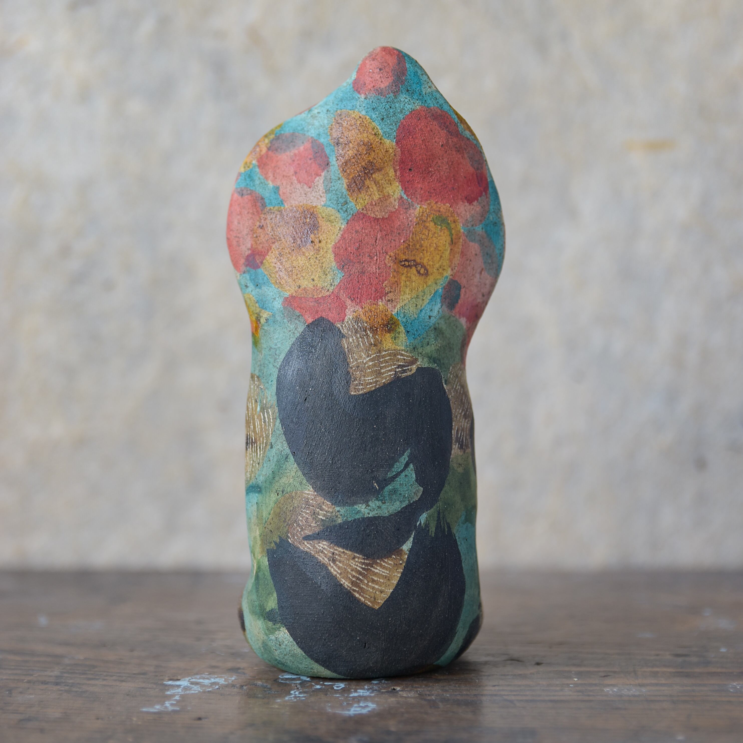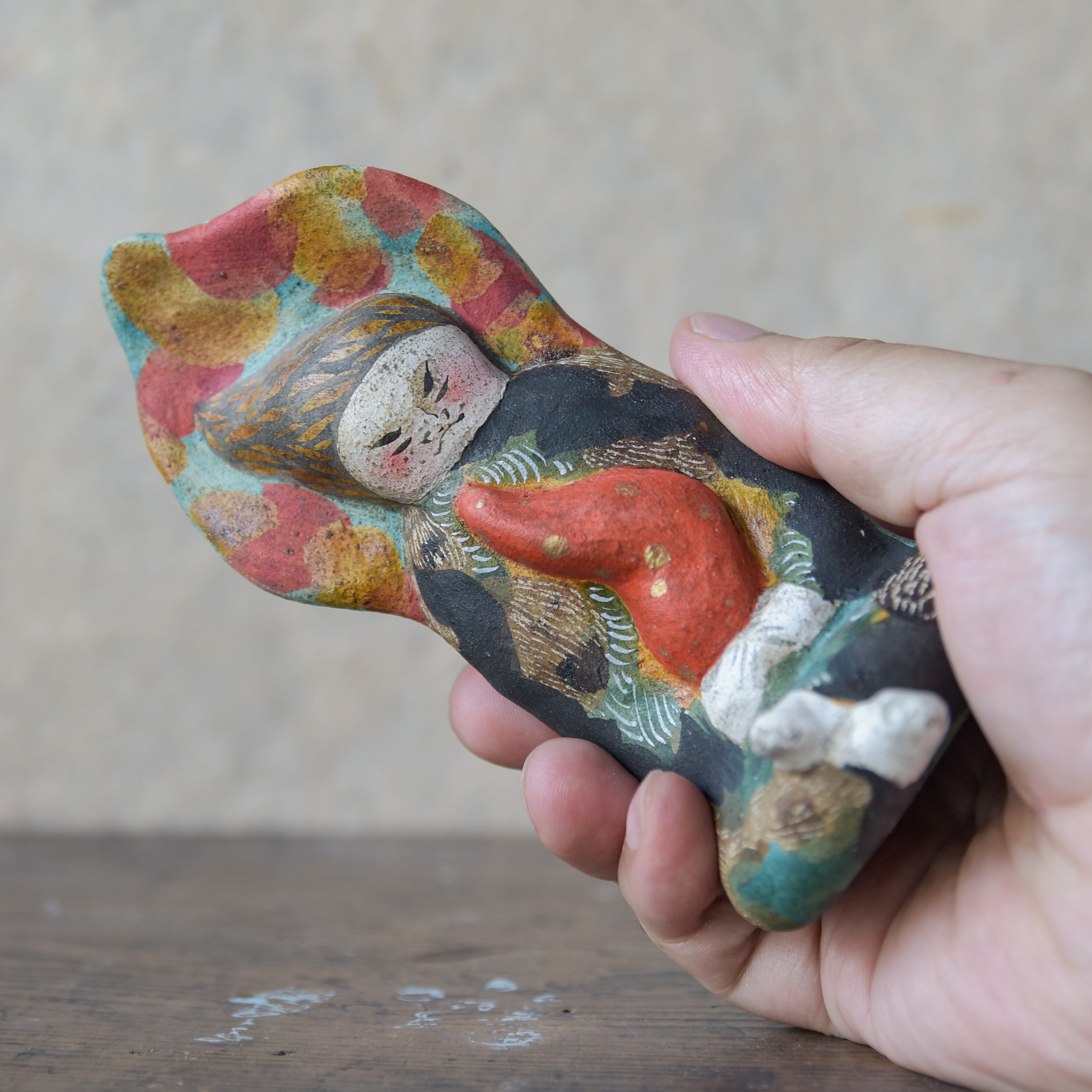 素焼き後、絵を描くように彩色をしたオリジナル土人形です。