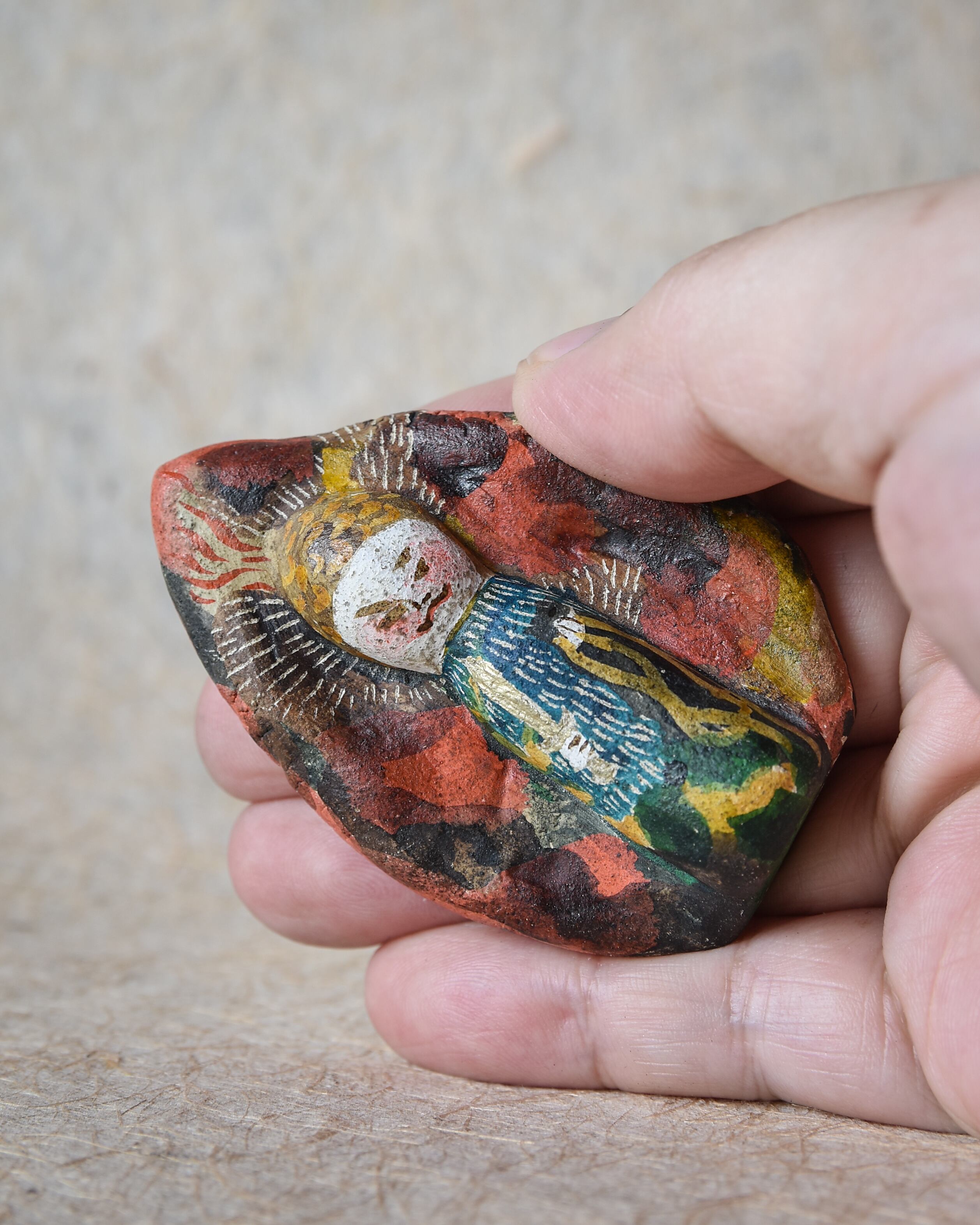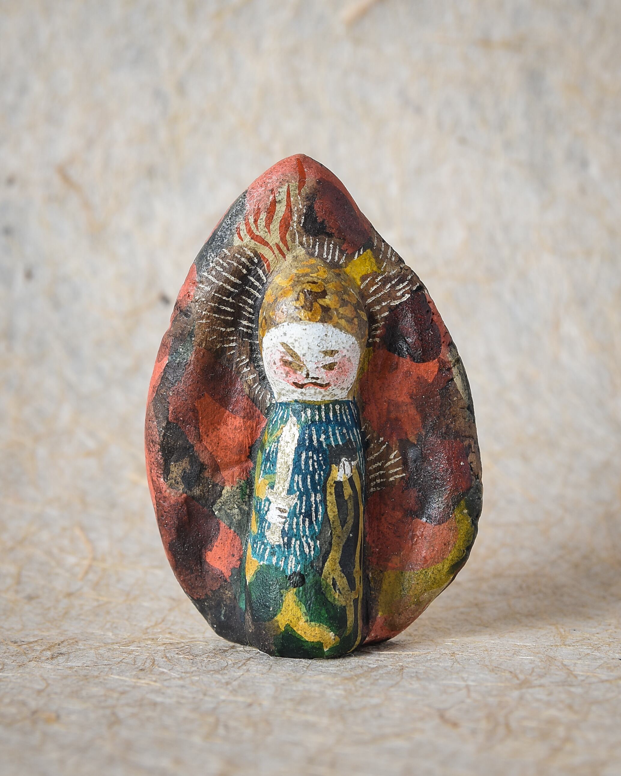素焼き後、絵を描くように彩色をしたオリジナル土人形です。