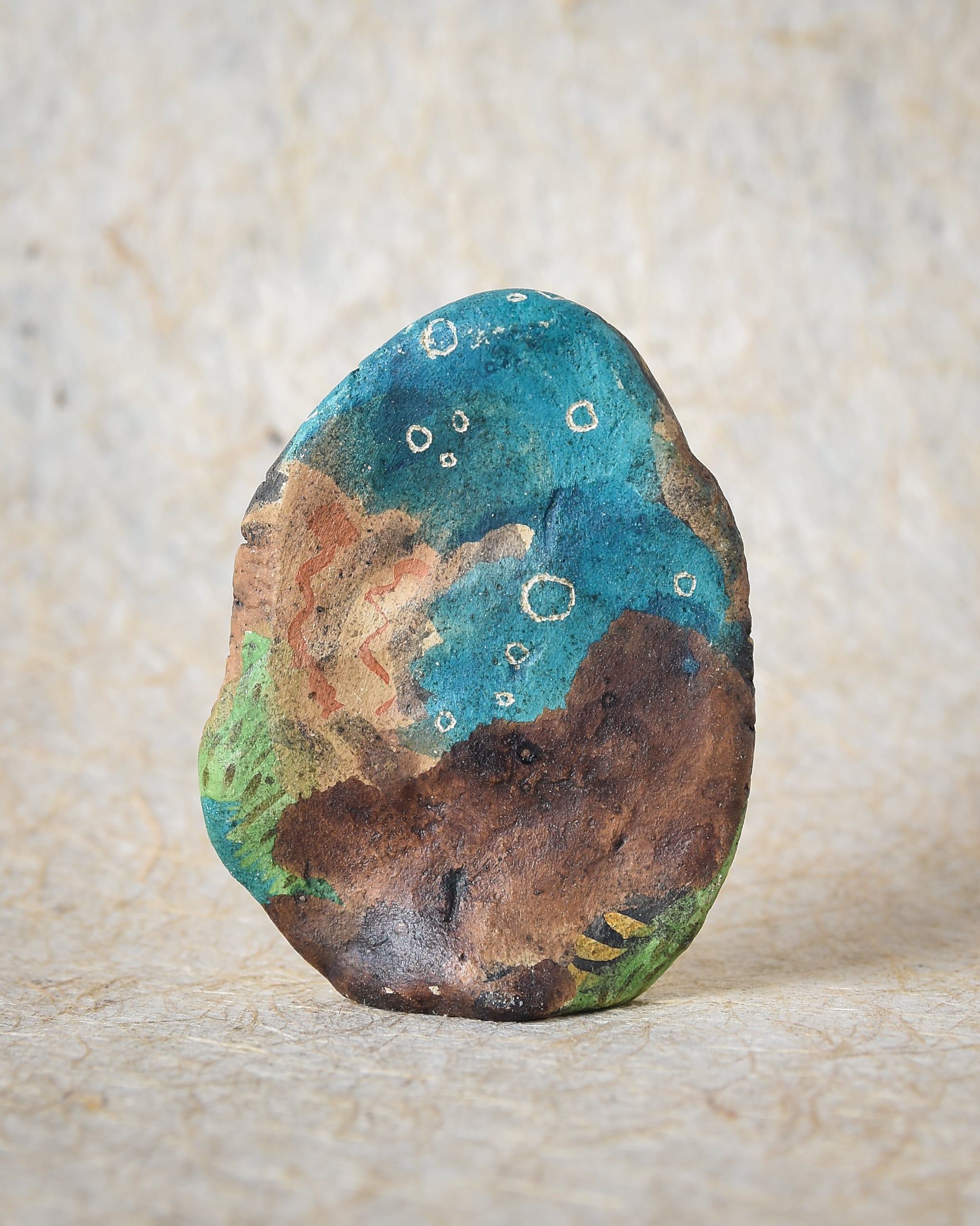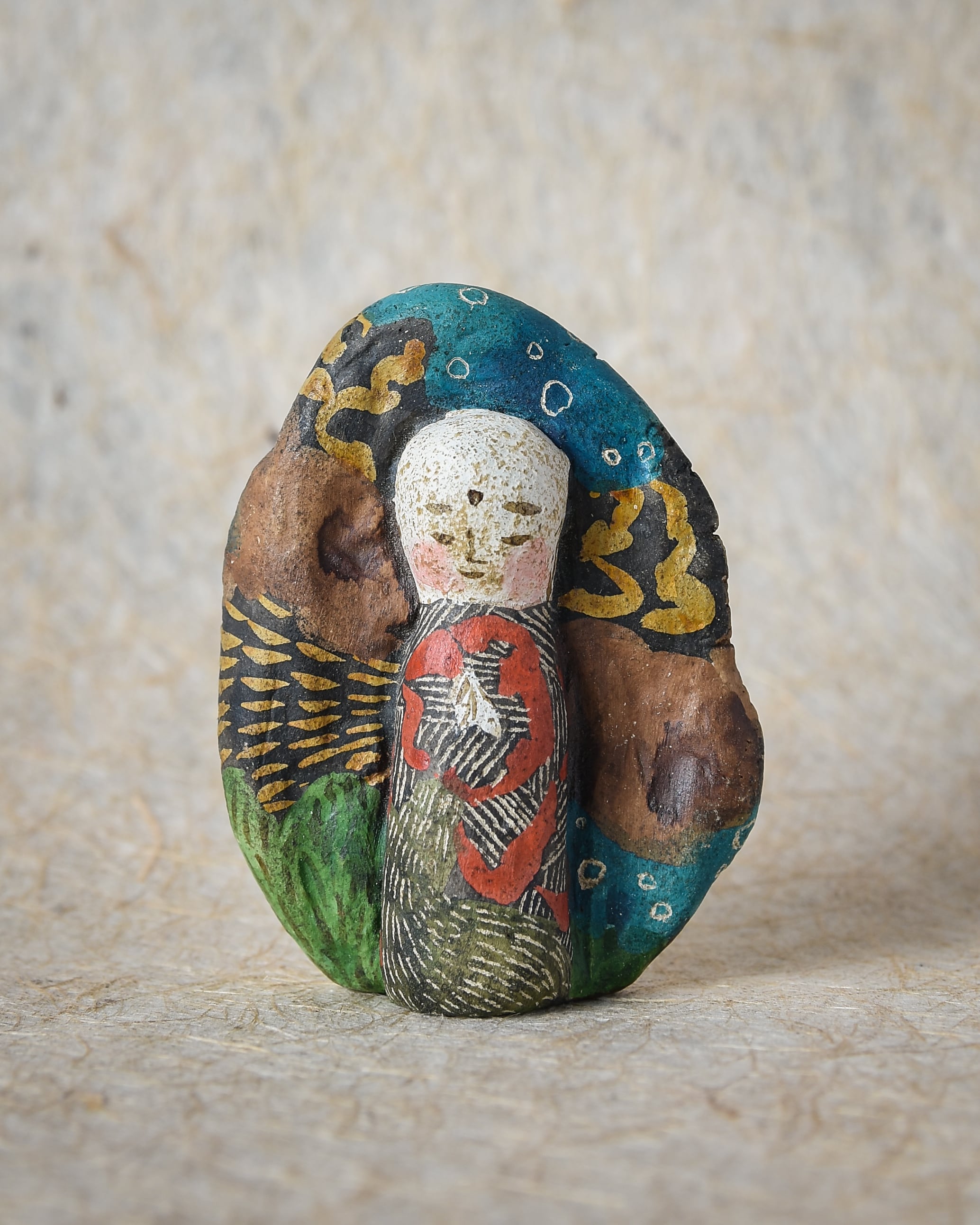 素焼き後、絵を描くように彩色をしたオリジナル土人形です。