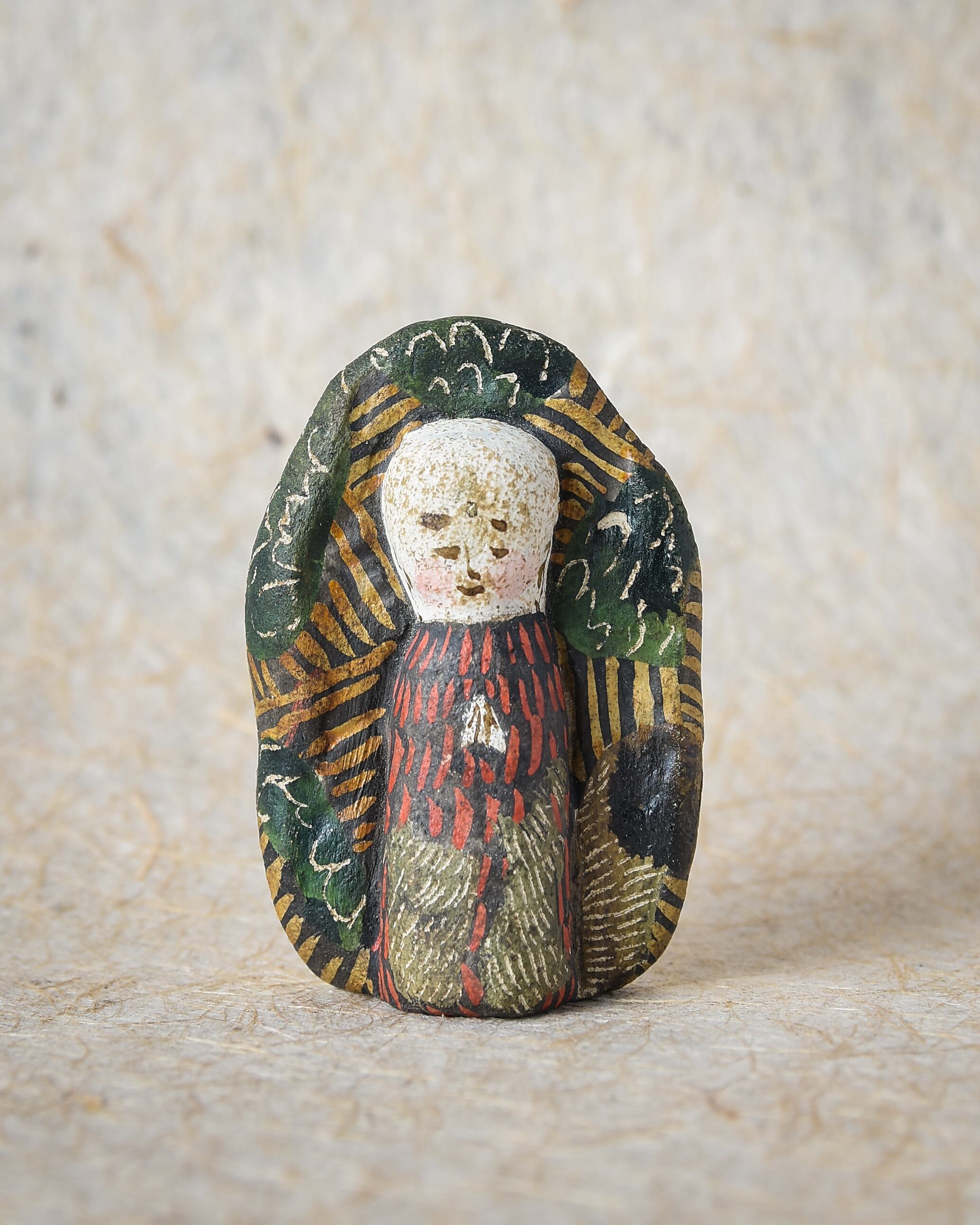 素焼き後、絵を描くように彩色をしたオリジナル土人形です。