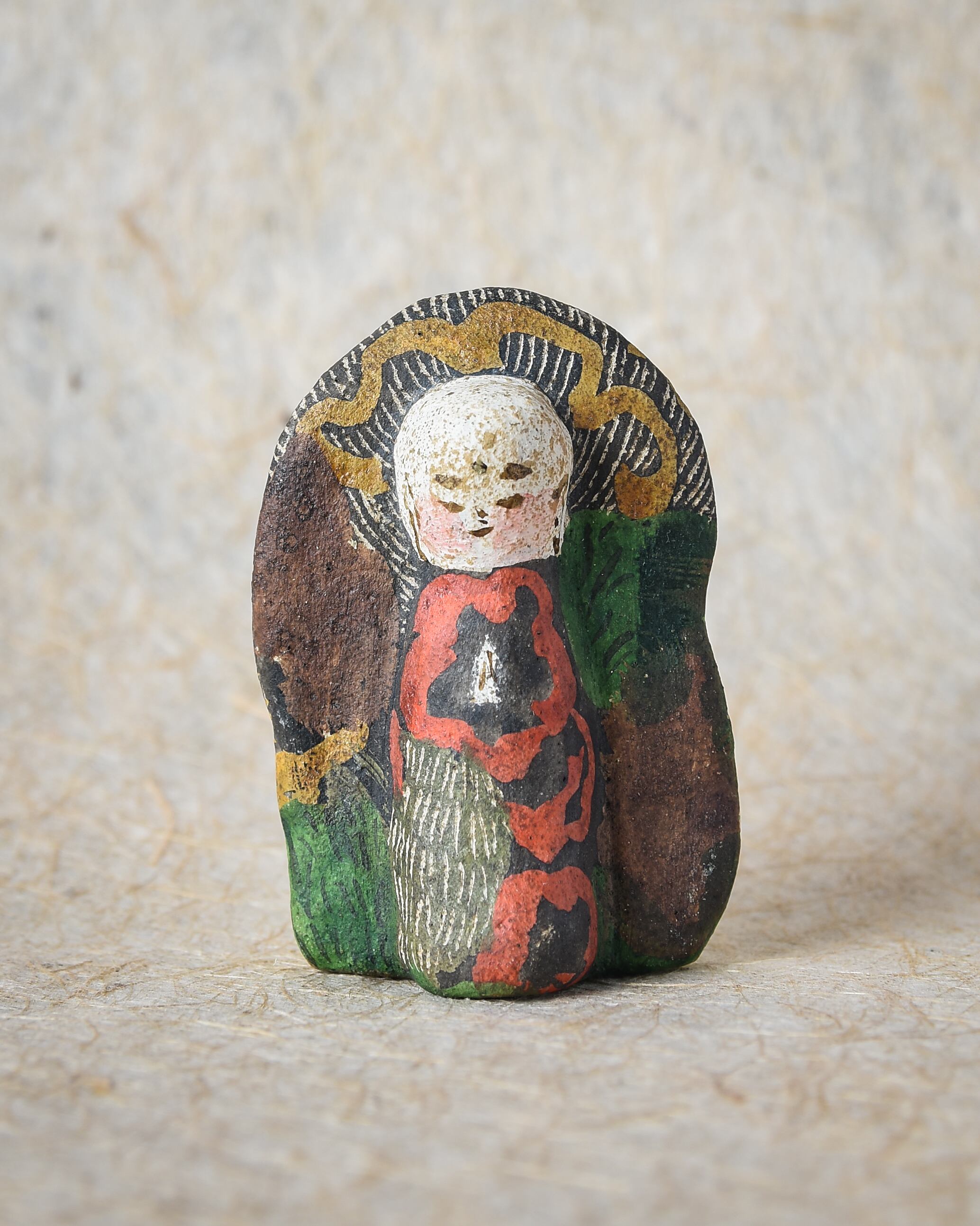 素焼き後、絵を描くように彩色をしたオリジナル土人形です。