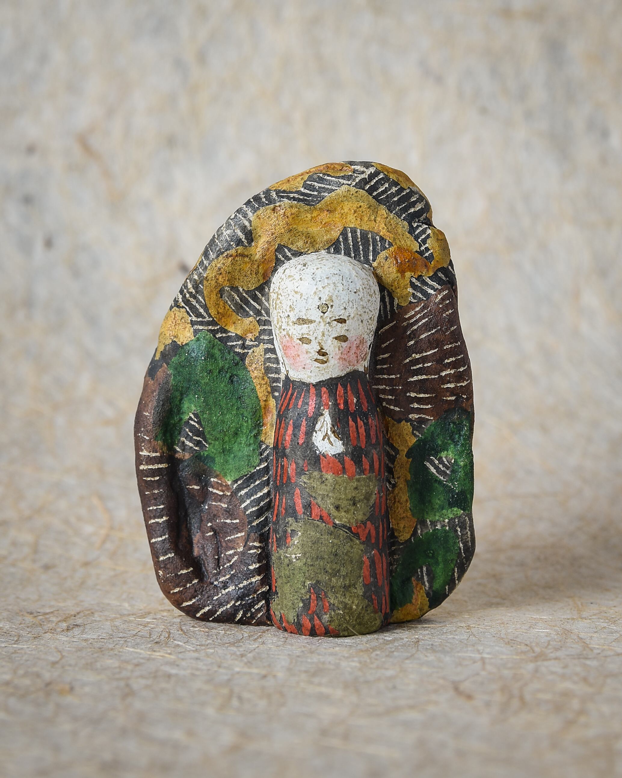 素焼き後、絵を描くように彩色をしたオリジナル土人形です。