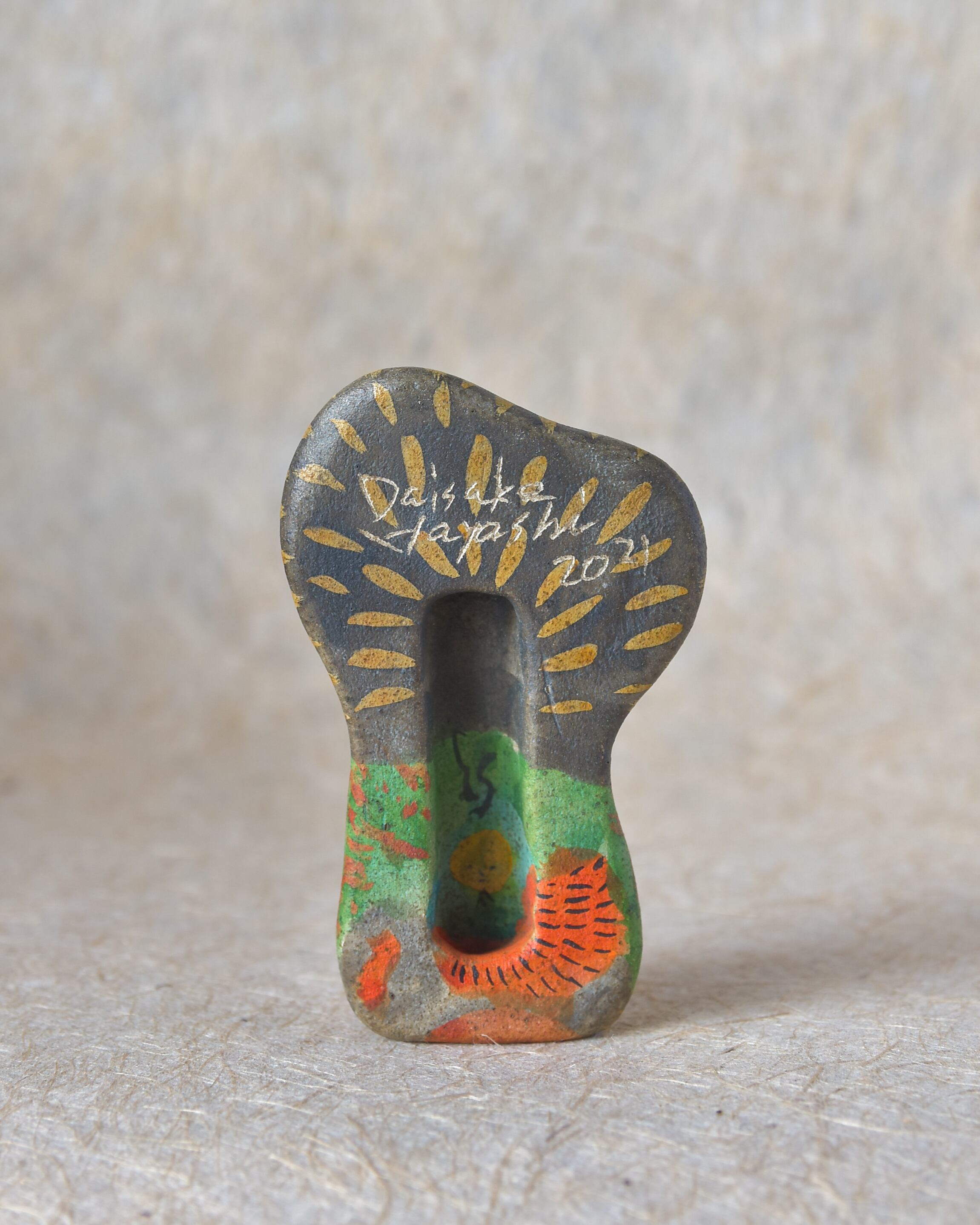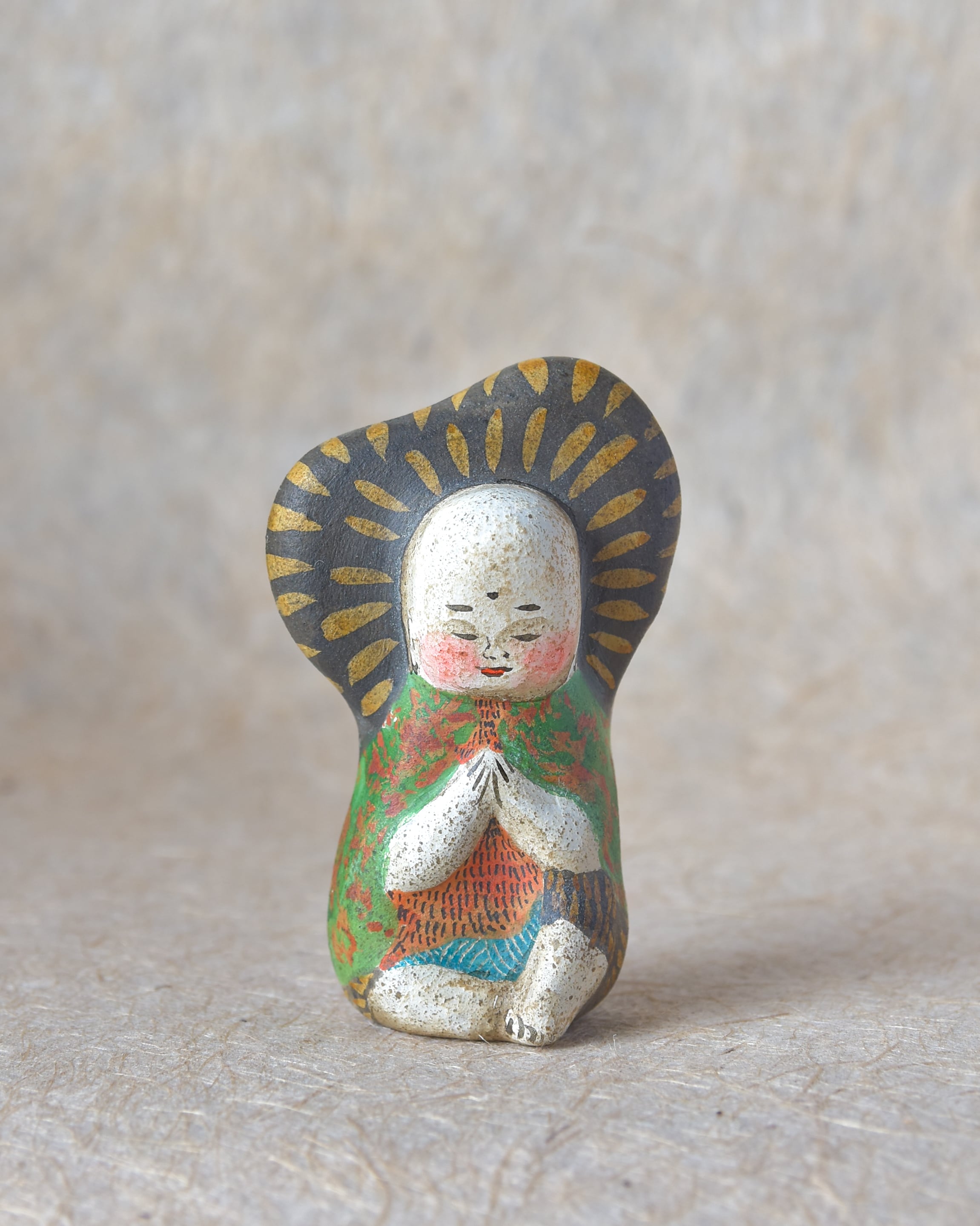 素焼き後、絵を描くように彩色をしたオリジナル土人形です。