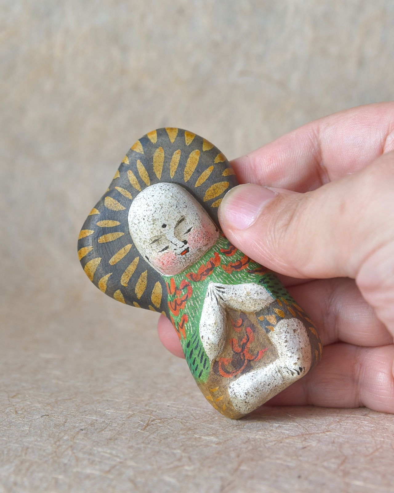素焼き後、絵を描くように彩色をしたオリジナル土人形です。