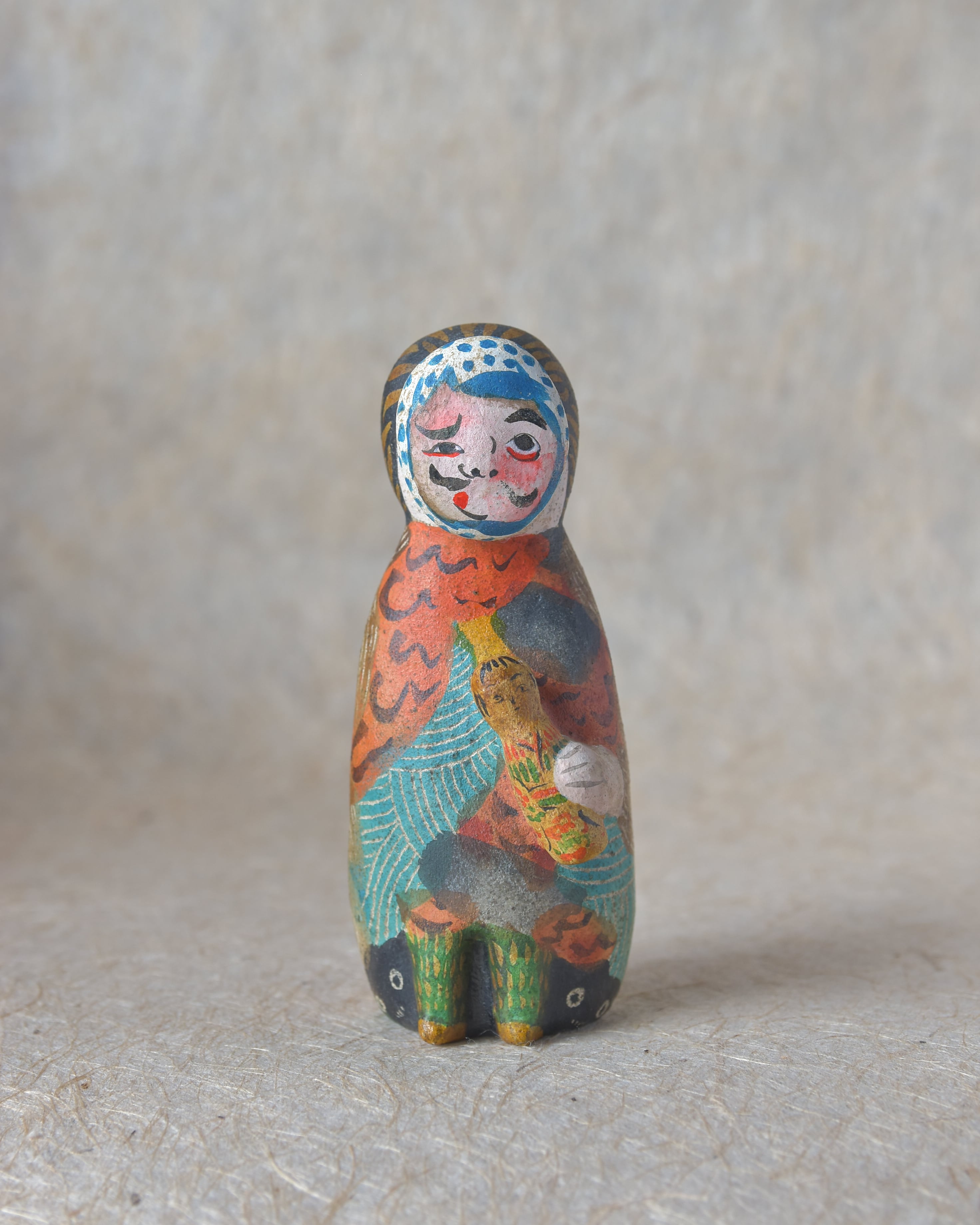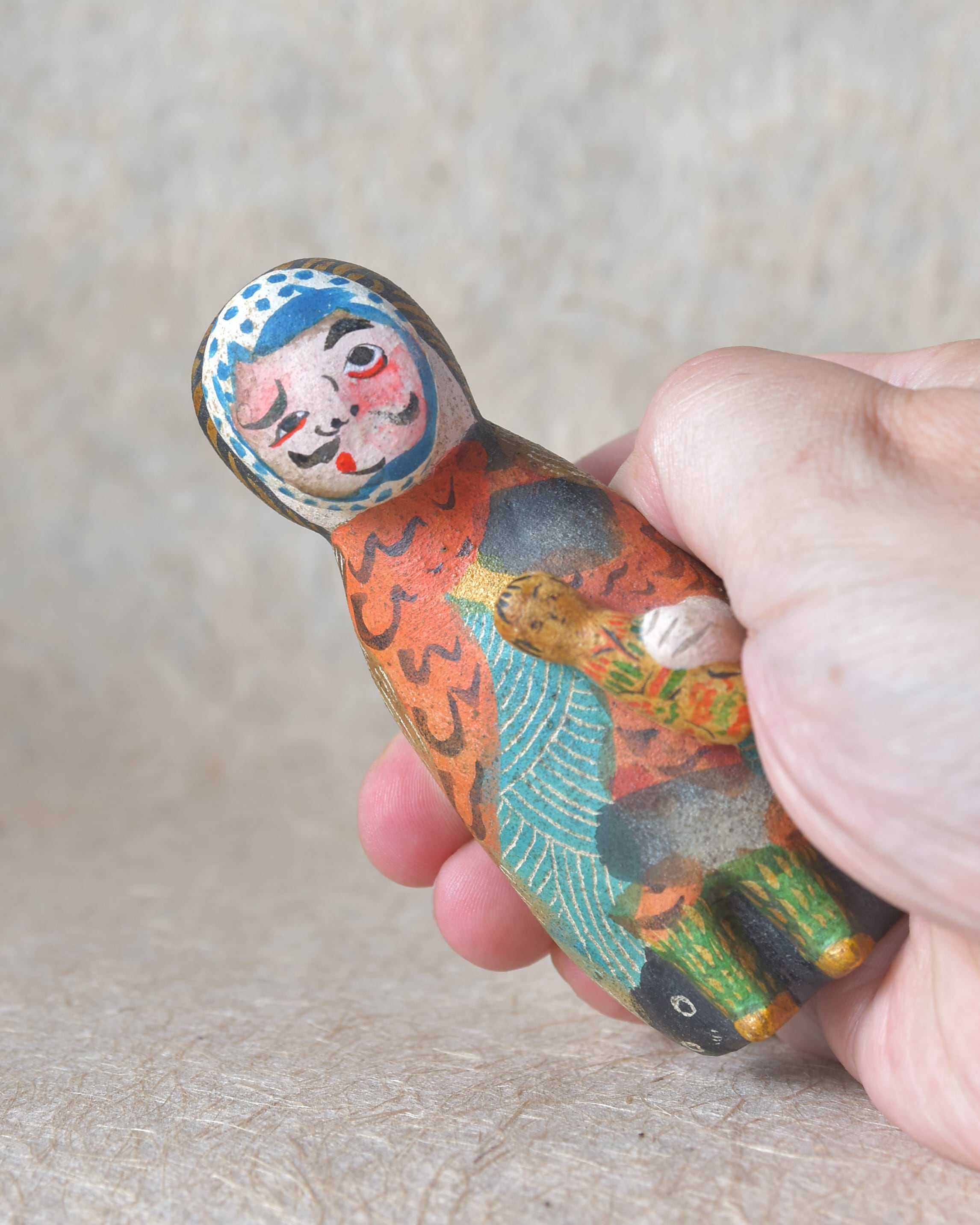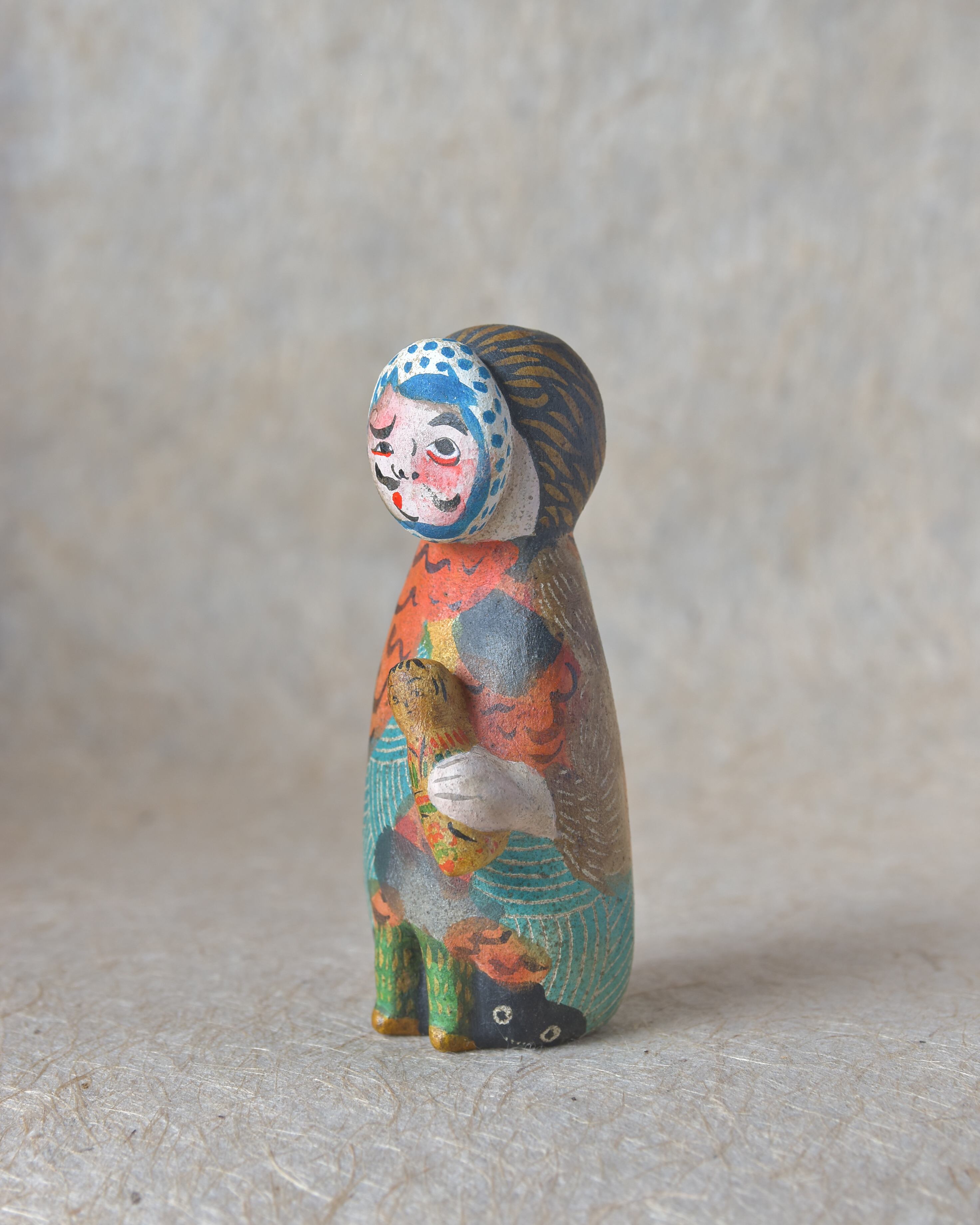 素焼き後、絵を描くように彩色をしたオリジナル土人形です。