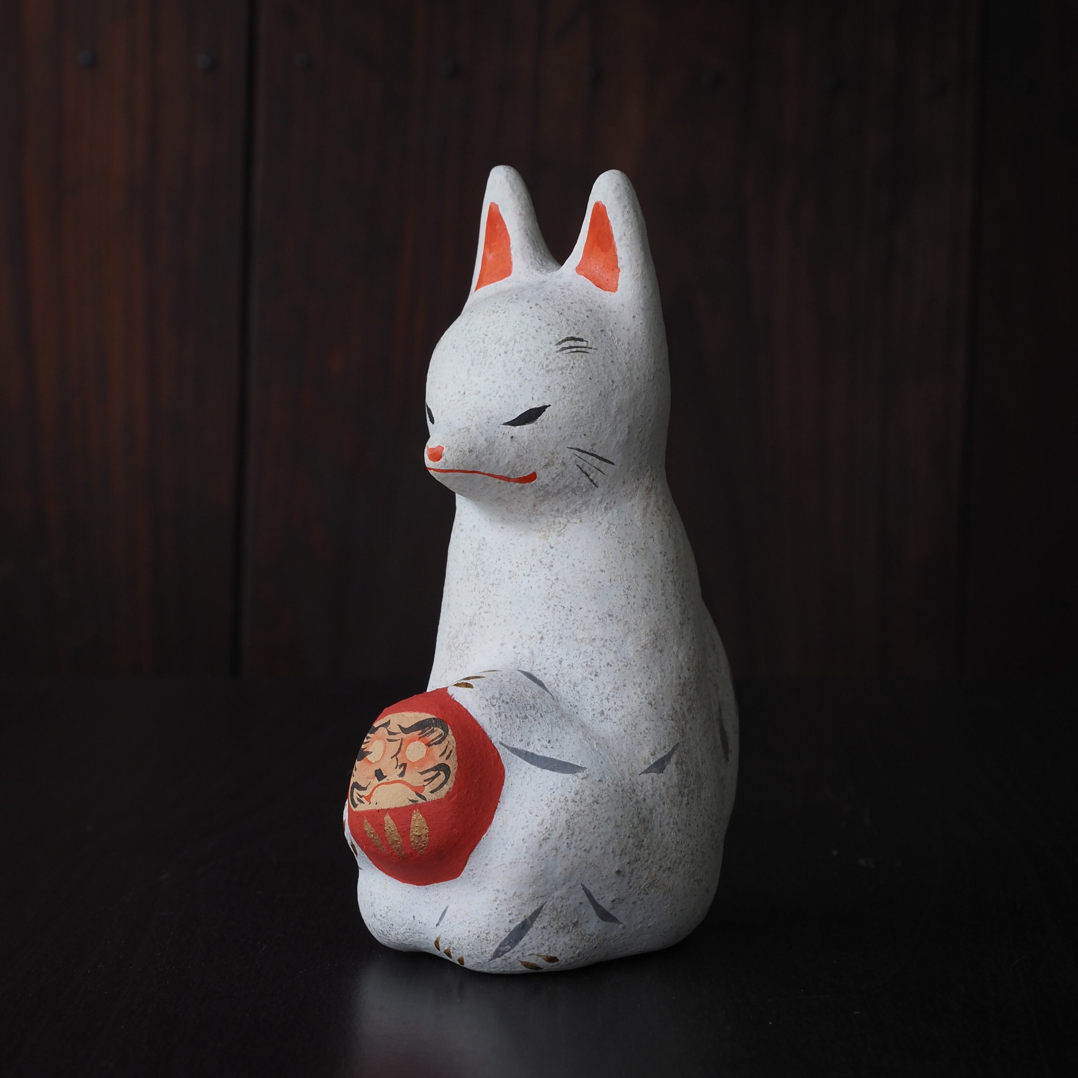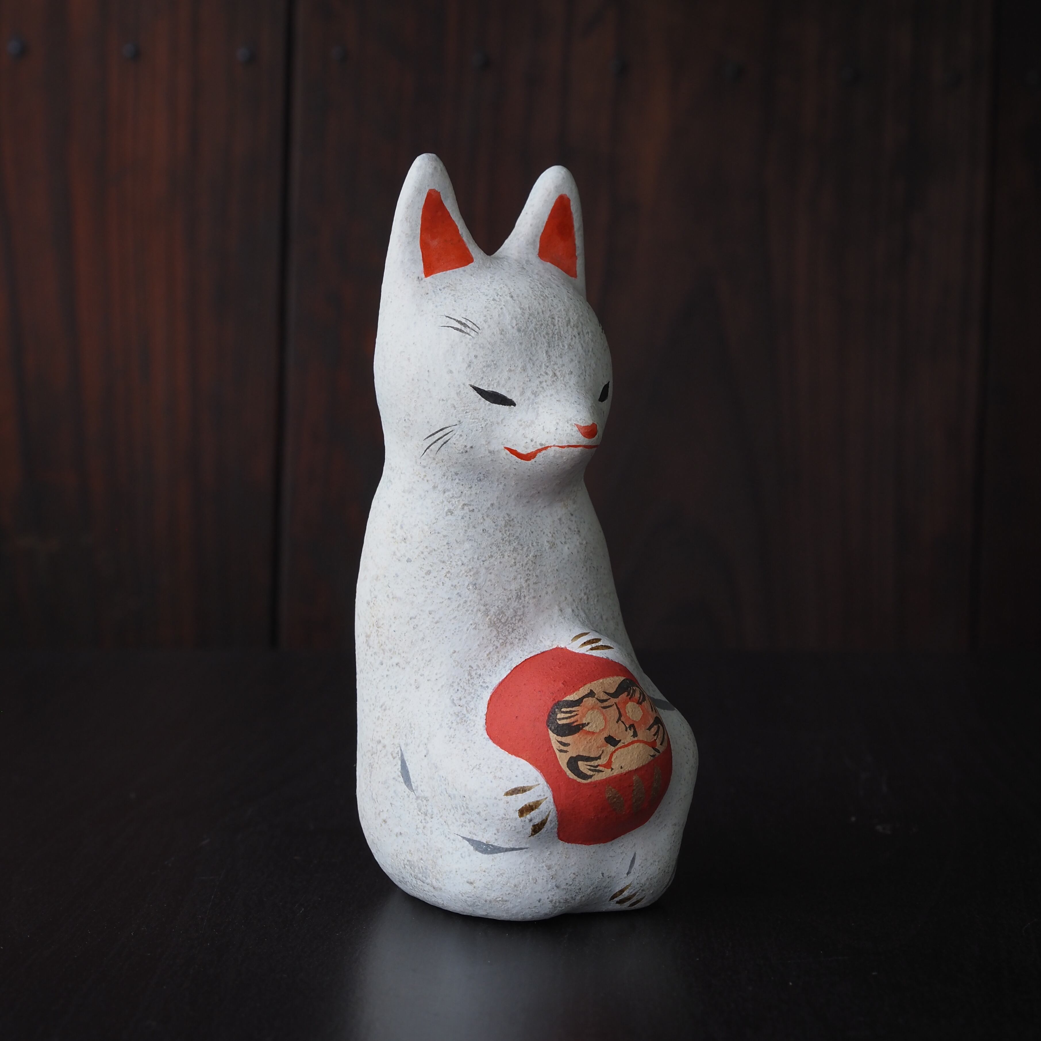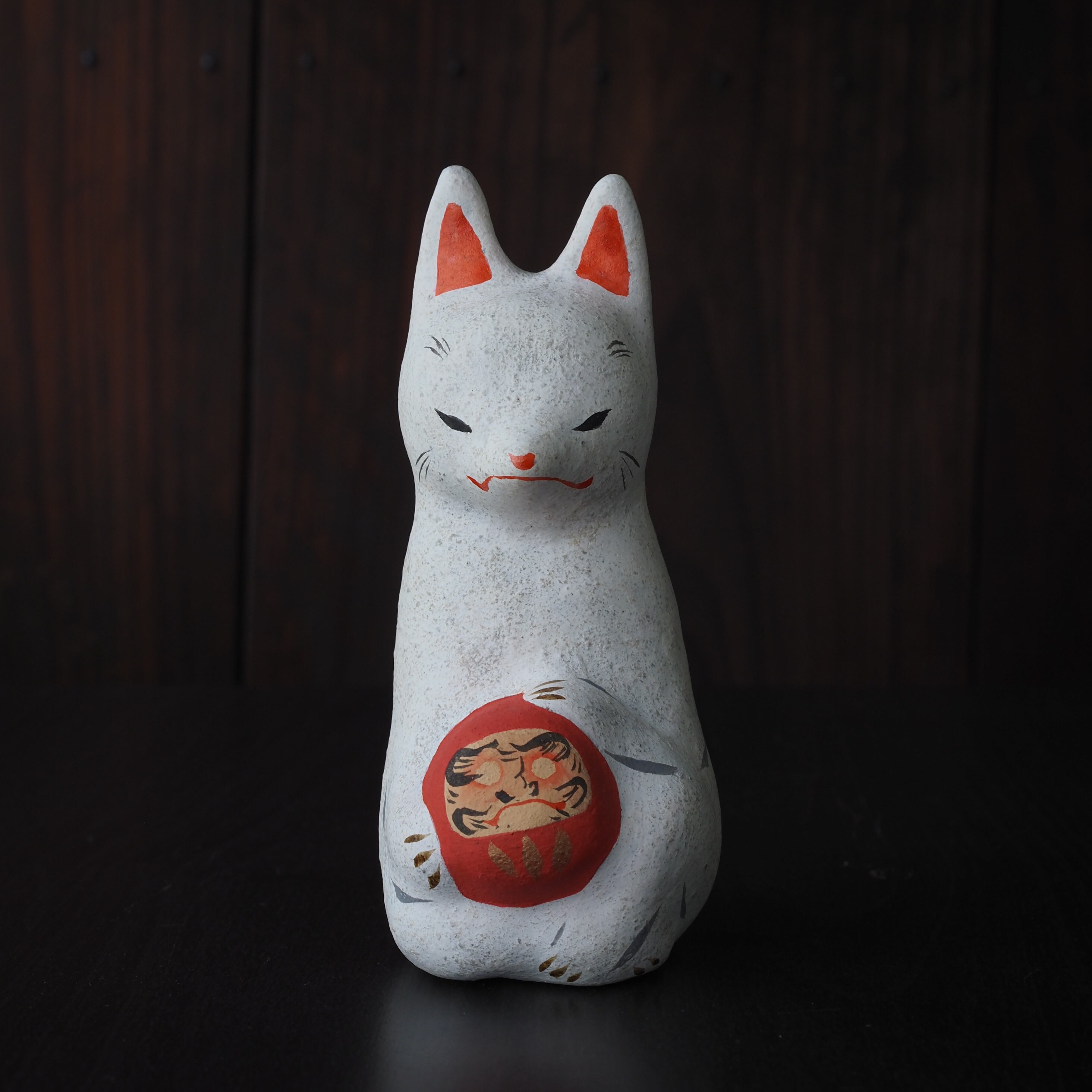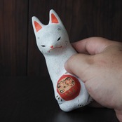 土人形【 だるま抱き白狐 】b