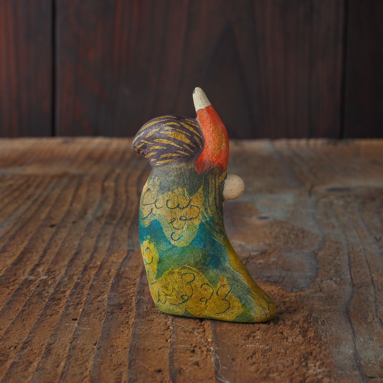 素焼き後、絵を描くように彩色をした