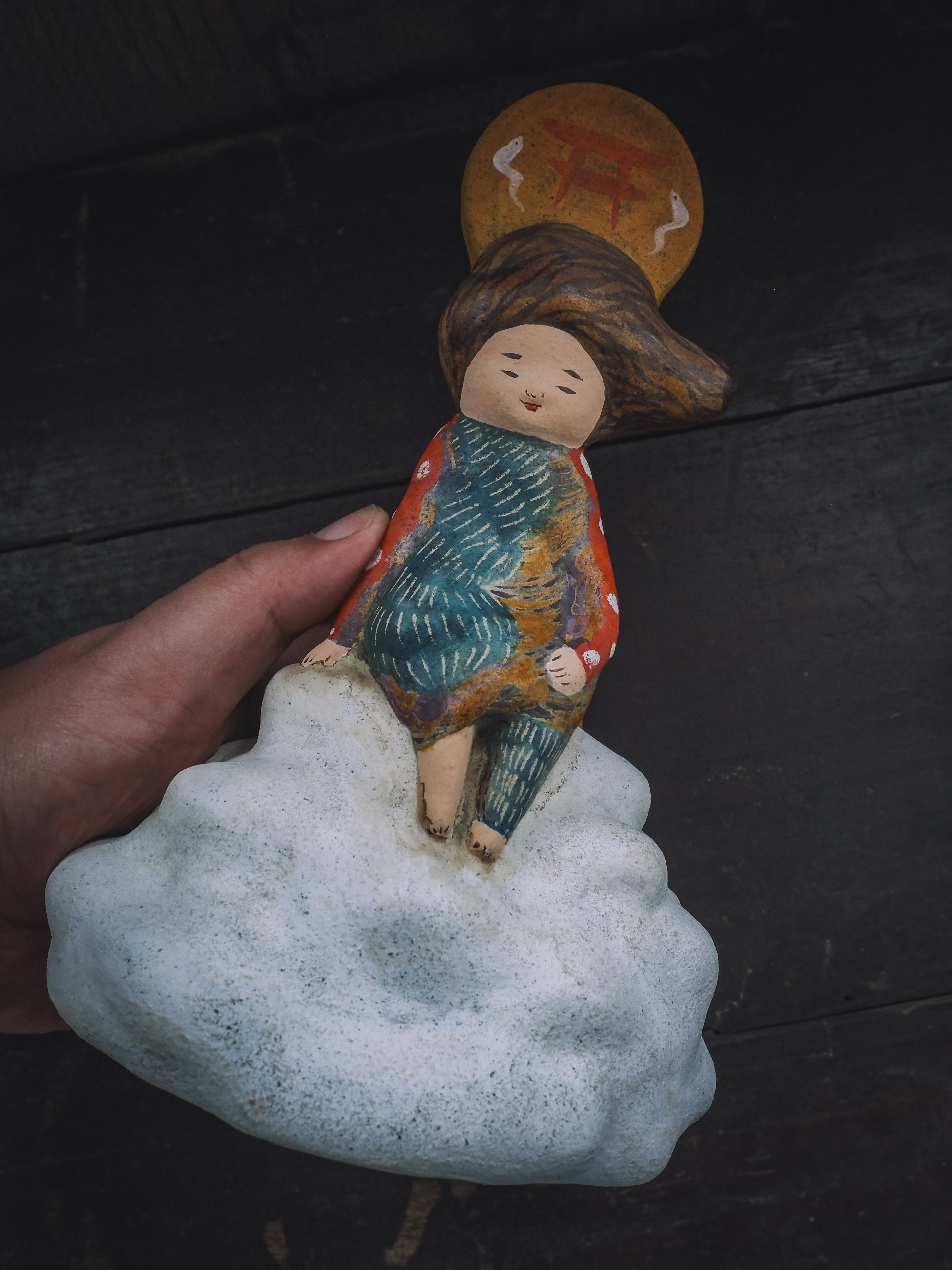 絵を描くように彩色をしたオリジナル土人形です。